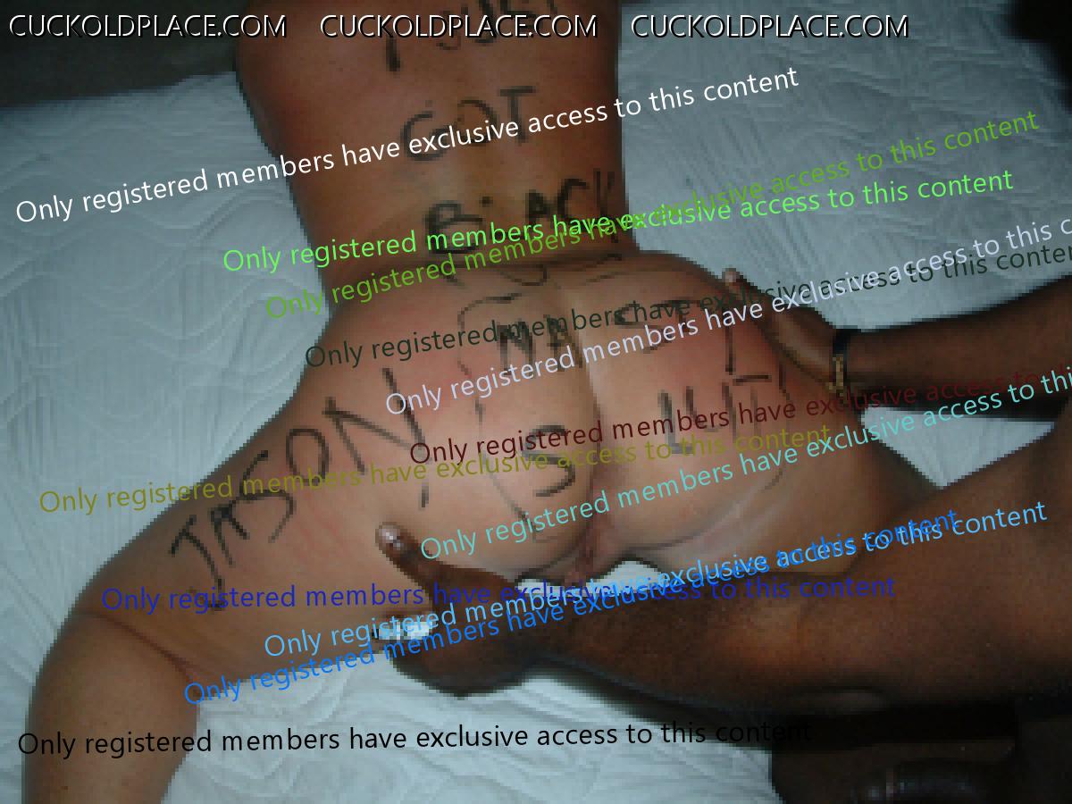 Thank you for posting the pictures of your beautiul and sexy wife. The wedding ring, the writing, the big black cock and the leash and collar are all things that I find VERY hot in these types of pictures and are also details that I look at when my wife is fucking some hung guy.