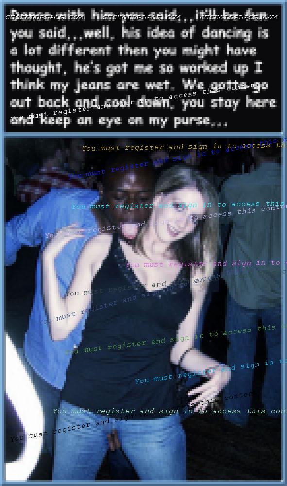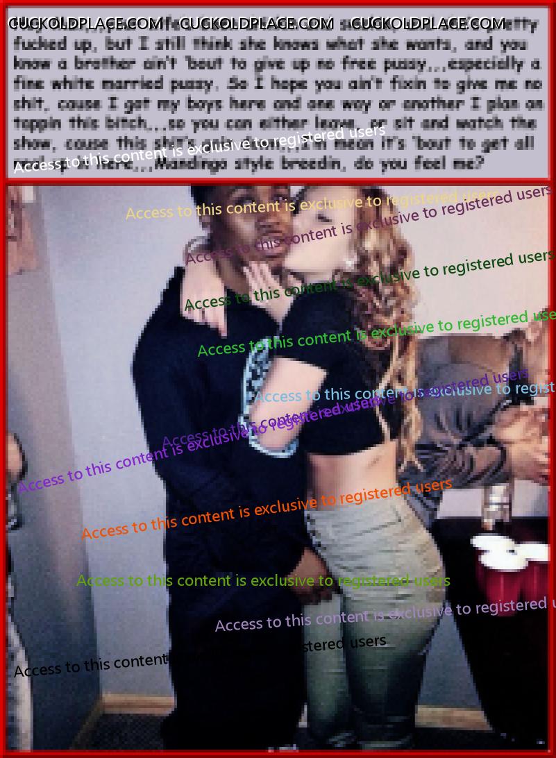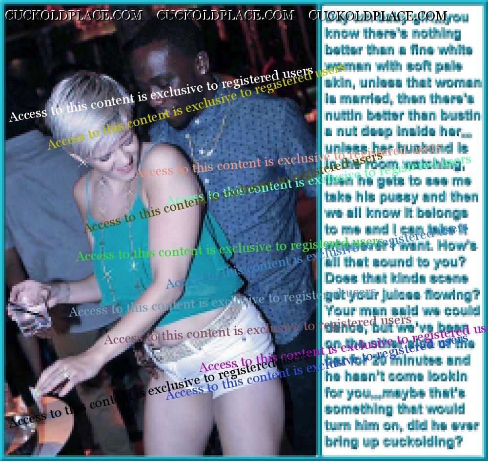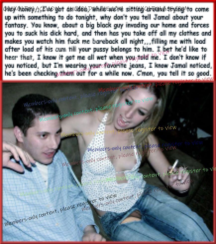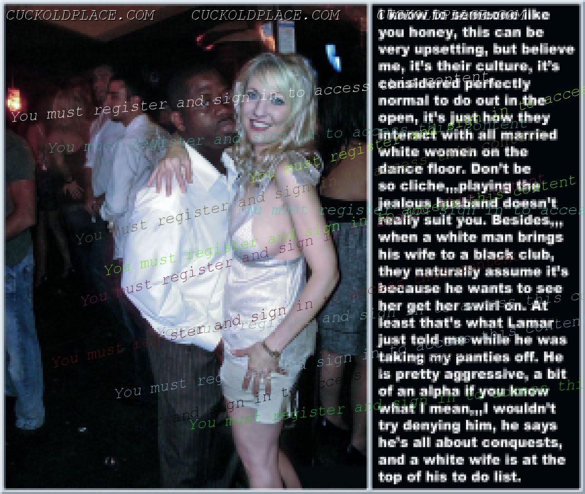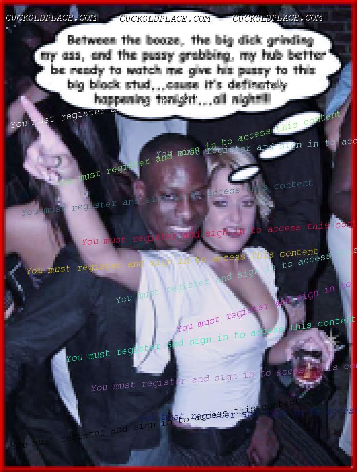 like2wacher66: Omg Mary you are the best. I loved every one of these. Now I gotta jack off im so horny. Thanx Babe,,,for the most part I come up with the text, and I rely on my hub to alter the pix to make the woman as white as possible and the men as black (sometimes the contrast alone sends me over the top), I also rely on him to add or subtract things from time to time,,,most of us are familiar with a lot of these pix (cause were pervs and are constantly coming across them while searching for new stuff), we can tell when a face has been swapped, or the pic has been flipped so the wedding ring is on the left hand (where most women wear it). This of course means that any and all signs, labels, shirt buttons, zippers, tattoos, etc. have to be reversed,,,I know right? Suddenly these are a lot more involved than most people realize. For instance, that last pic the guys hand wasn't originally in her crotch. Other things like T-shirts, cuckold jewelry (like that necklace a few pix up), along with Queen of Spades necklasses. I still have a bunch more of these he's already finished, plus he has over 1200 in the works, but each pic takes up to an hour to do, some more. You should see the collection of club pix he's been working on, someday i'll get around to posting them, they take a lot more work, but some of them are really great, especially with the captions.