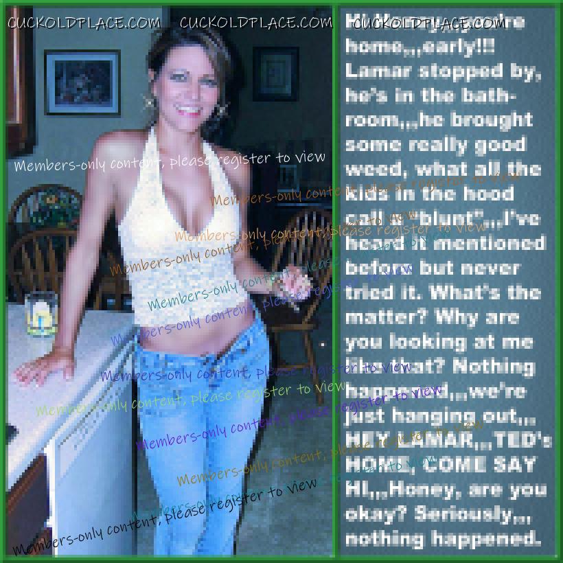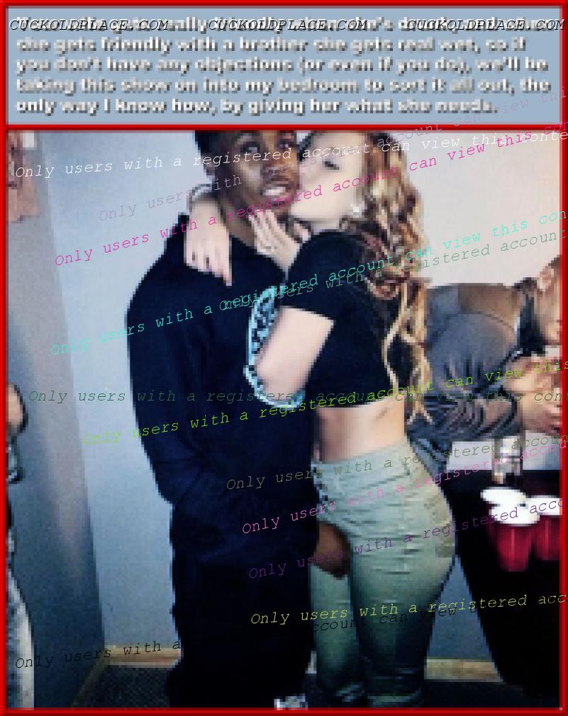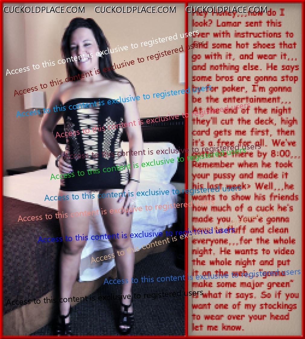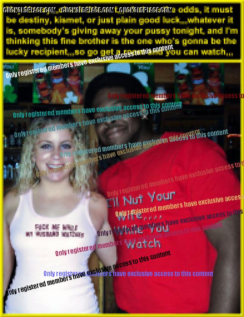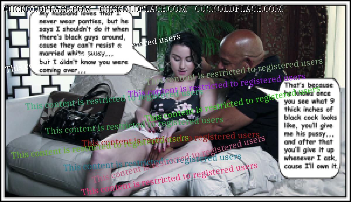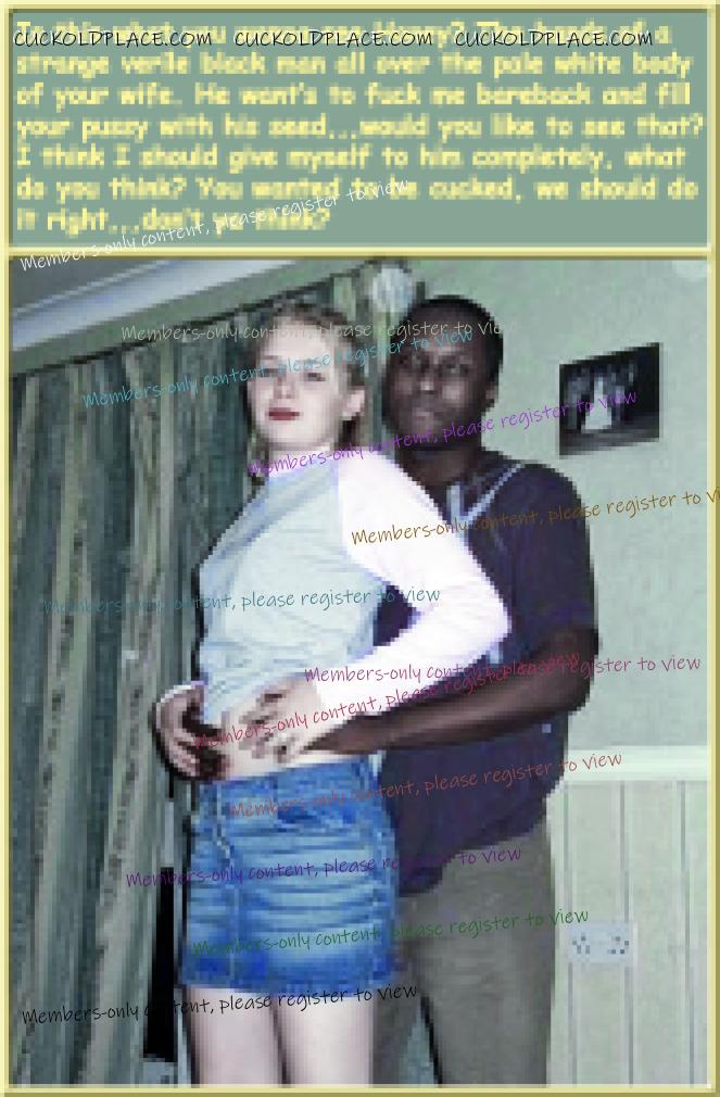 like2wacher66: Omg Mary you are the best. I loved every one of these. Now I gotta jack off im so horny. Thanx Babe,,,for the most part I come up with the text, and I rely on my hub to alter the pix to make the woman as white as possible and the men as black (sometimes the contrast alone sends me over the top), I also rely on him to add or subtract things from time to time,,,most of us are familiar with a lot of these pix (cause were pervs and are constantly coming across them while searching for new stuff), we can tell when a face has been swapped, or the pic has been flipped so the wedding ring is on the left hand (where most women wear it). This of course means that any and all signs, labels, shirt buttons, zippers, tattoos, etc. have to be reversed,,,I know right? Suddenly these are a lot more involved than most people realize. For instance, that last pic the guys hand wasn't originally in her crotch. Other things like T-shirts, cuckold jewelry (like that necklace a few pix up), along with Queen of Spades necklasses. I still have a bunch more of these he's already finished, plus he has over 1200 in the works, but each pic takes up to an hour to do, some more. You should see the collection of club pix he's been working on, someday i'll get around to posting them, they take a lot more work, but some of them are really great, especially with the captions.