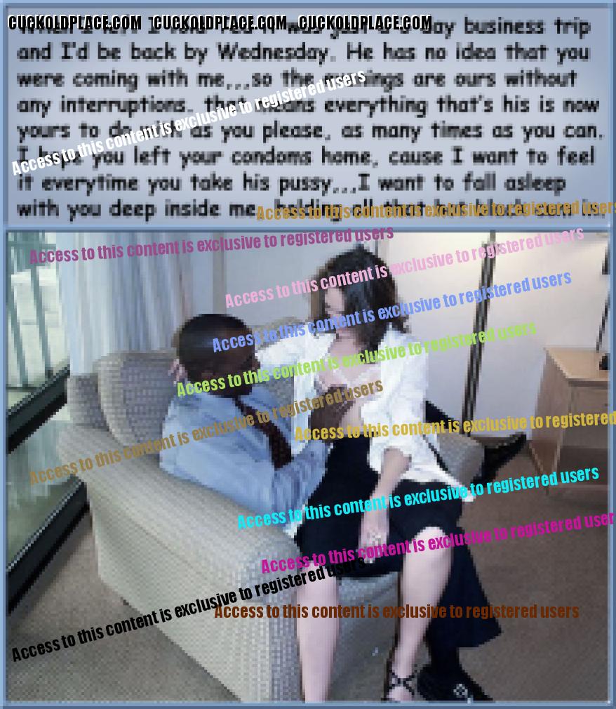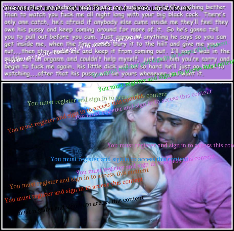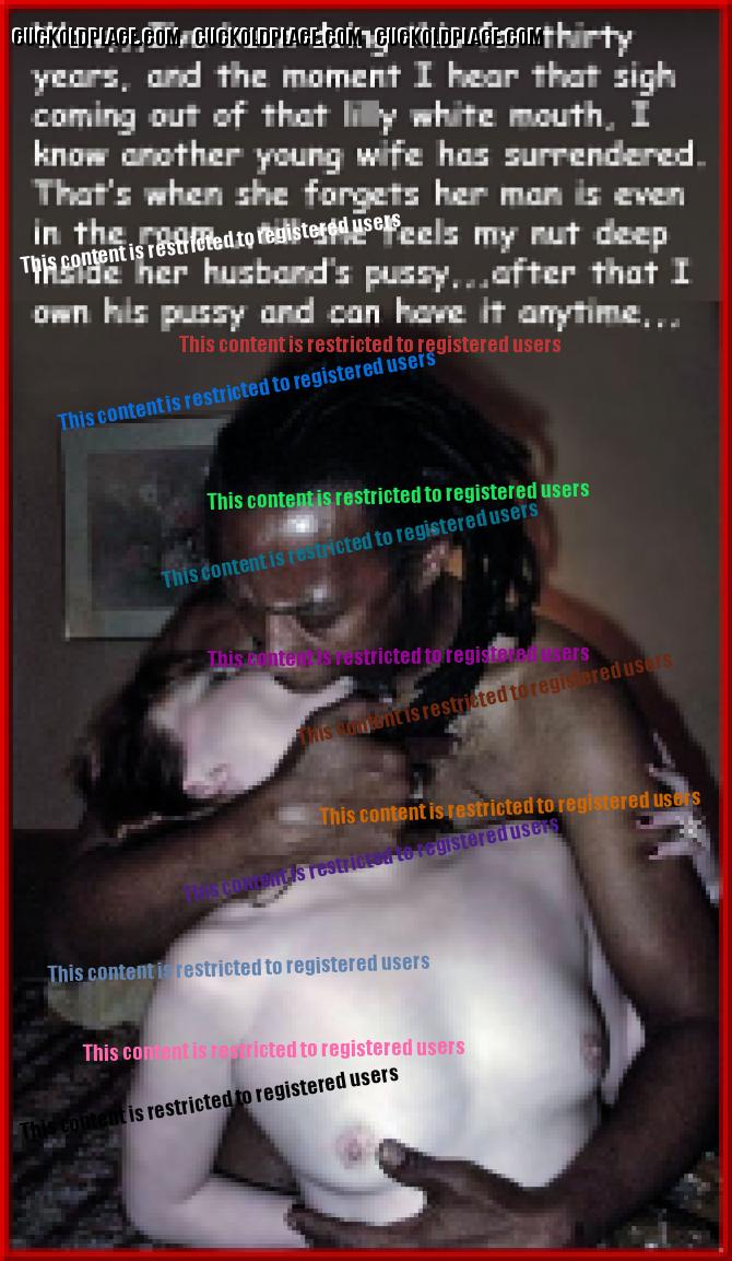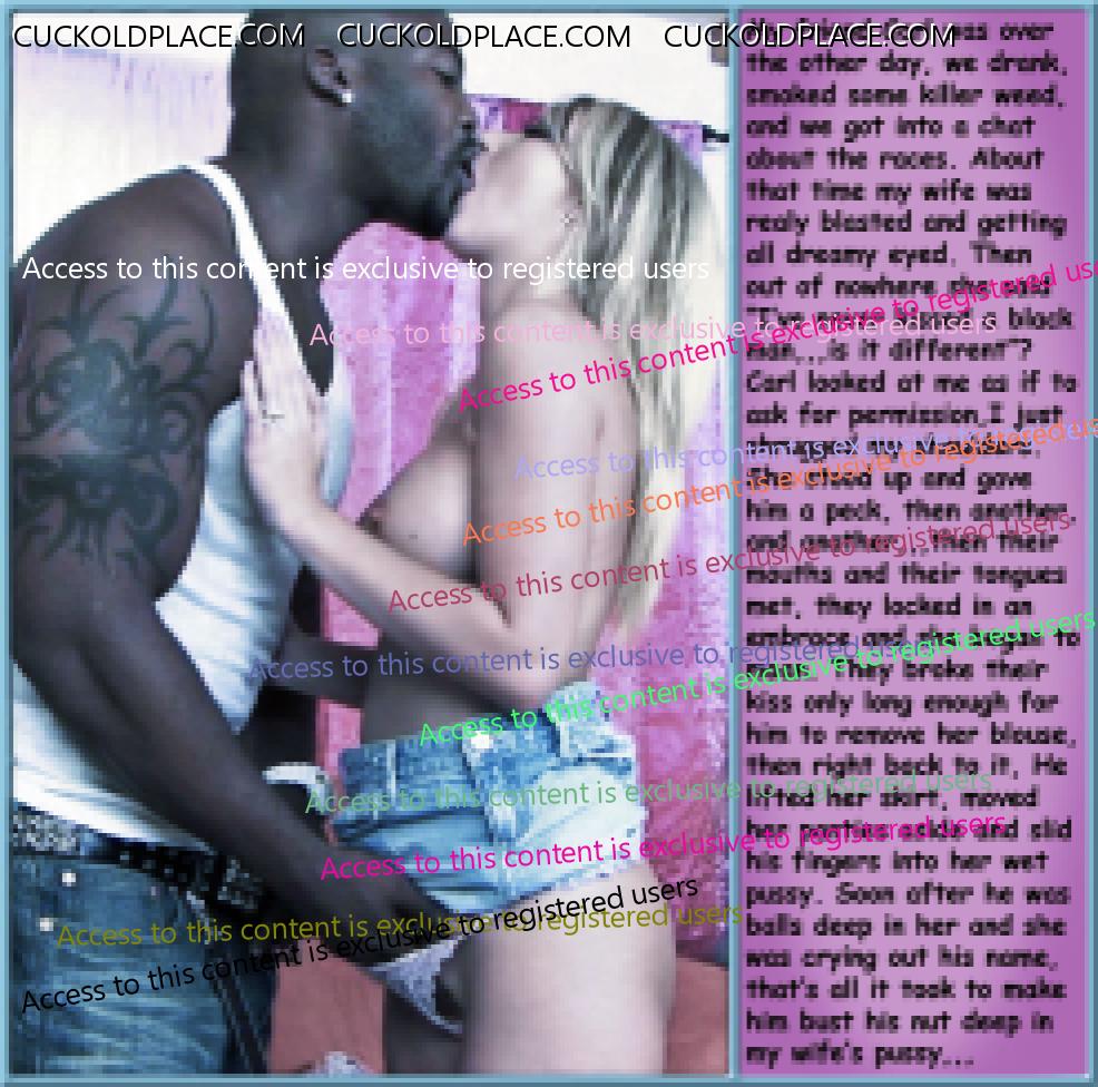 I really like your approach to cuckolding. I like the idea that the wife is reluctant but the husband is obsssed with watching his wife take a big cock, esp a black one. So because she loves her husband she gives it a try for him and agrees to fuck a black man. Then she gets so turned on by all the dynamics that she has one orgasm after another while hubby jacks off. It even turns her on to see hubby suck the cock that just slipped out of his wife's pussy. Her husband loves his wife even more for having such great sex with a great physical specimen he can never be. But even when the bull is thru with the wife, she likes to have hubby fuck her good and get some sweet sloppy seconds and come in her already filled up pussy. It's very satisfying for all. But so far just a fantasy for me. But I look forward to the day that my wife figures this out.