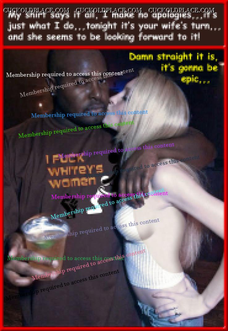Pic #1,,,Sometimes the road to cuckoldry isn't paved with good intentions. Pic #2,,,White wives everywhere suddenly have a great excuse,,,they're paying it forward for their white privilege. Pic #3,,,When she stares at you calculating your reaction,,,but doesn't do anything to stop him. Pic #4,,,Nothing like playing second fiddle with your own wife,,,  Multi_Orgasmic Mary