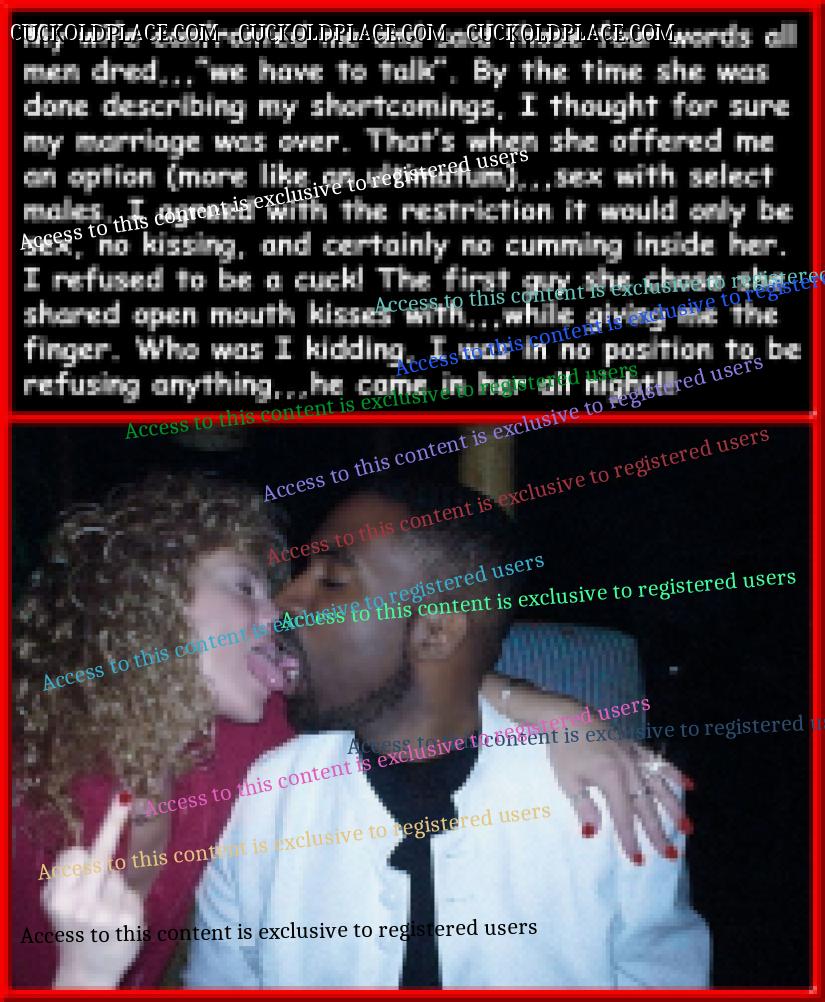 Pic #1,,,When you get exactly what you wanted, but maybe a little more than you wanted? Pic #2,,,"Relegated To",,,the two worst words in the cuckold dictionary. Pic #3,,,"She's living in LA, with my ex best friend named Ray, a guy she said she knew and she sometimes hated". I cucked my hub the first time with a guy I told him about, a guy I said I couldn't stand,,,then I got ***** and fucked him. Pic #4,,,When you're no longer the king of your castle,,,  Multi_Orgasmic Mary