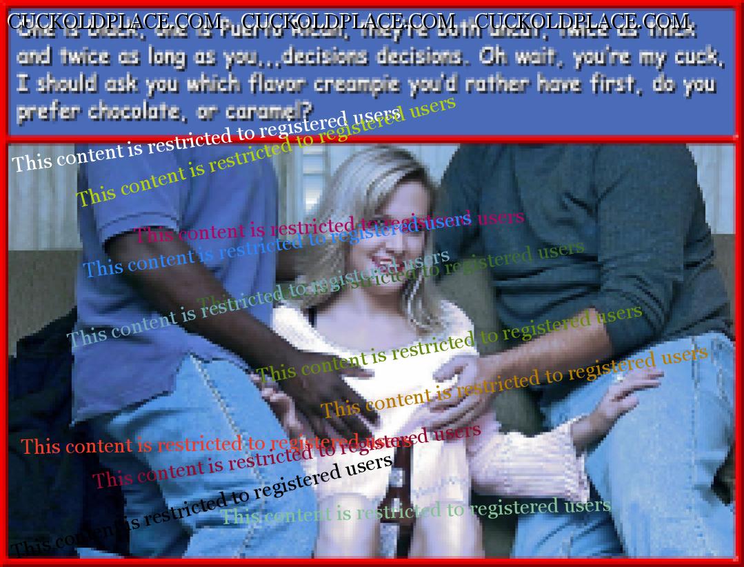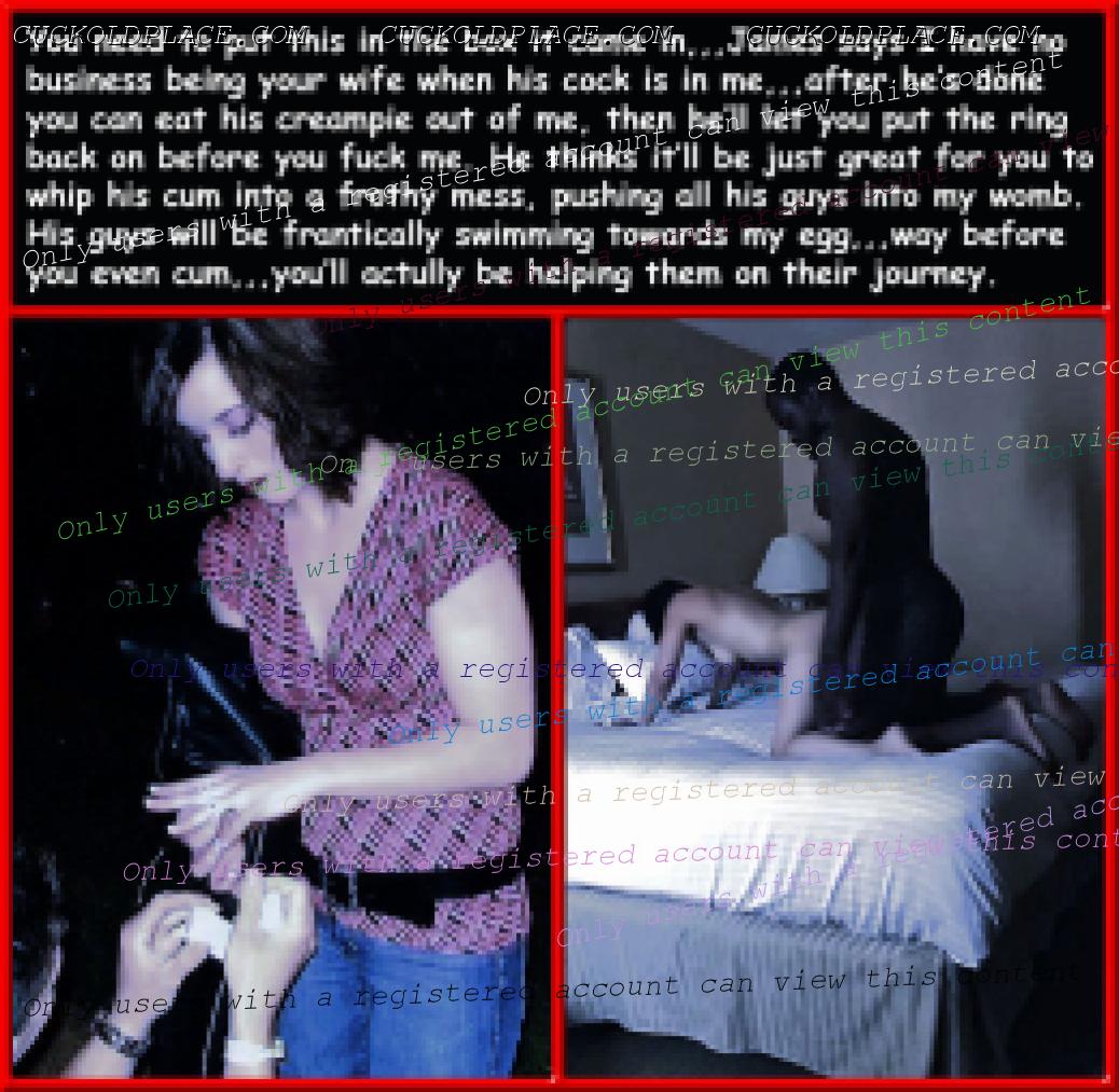 fem9jamie: I LOVED your last series of captions. Many of them were themed around "clean up." Made my mouth water! Obviously my favorites are gonna be the ones that feature my own specific practices,,,Your impregnation captions were also really sexy. I don't know why that kind of thing turns me on so much. It's because whether you're a true cuck or a wanna be, you know that at least the risk of pregnancy has to exist for you to actually be a cuck,,,if a guy fucks your wife with a condom, their closeness can make it feel like he's cucked you, but in reality it's equivalent to fucking her with a plastic dildo, not actually cucking.