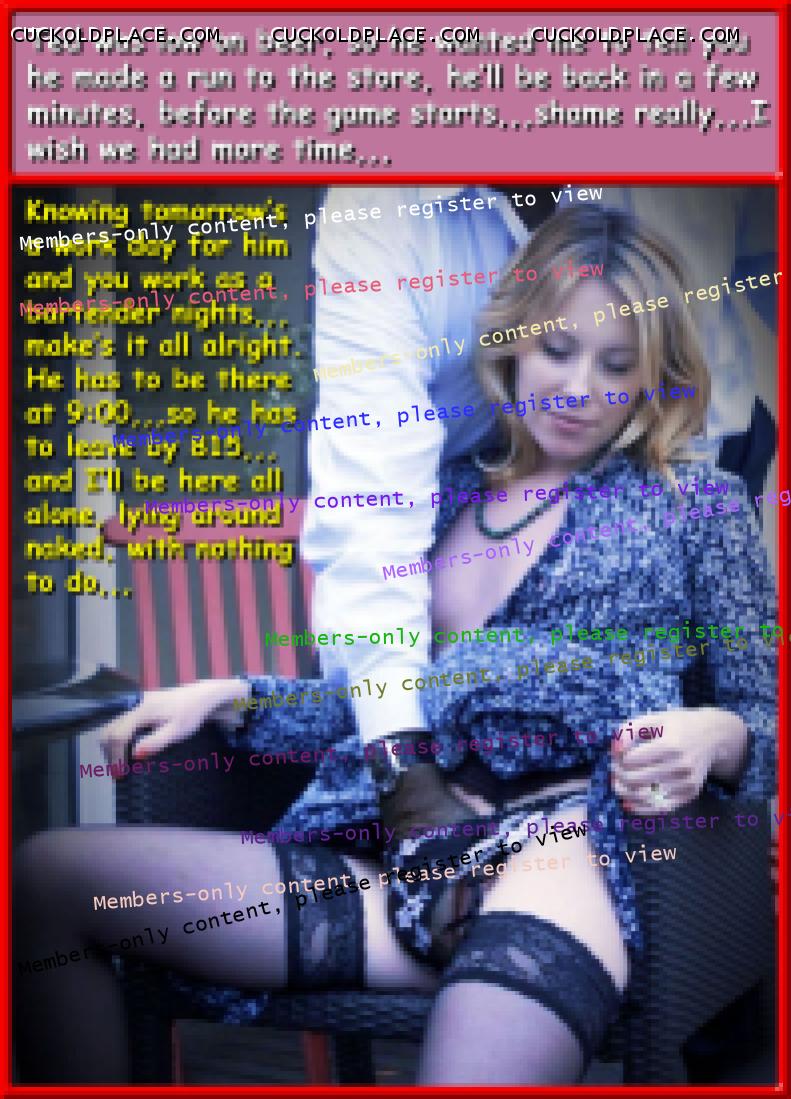 fem9jamiefem9jamie: Hi Mary and hubby. That you for more hella hot captions! That was the first time I have used the word "hella." I hope it didn't sound to corny! lol Not at all,,,back before weed became legal in Oregon, the cops were always "tryin to catch me rollin dirty"1097.4: Do you like a guy who cums a lot? Who was your heaviest cummer? Do you like desert? Of course I do, that's the best part, it not only give my hub a decent face full,,but there's still plenty left over for a decent sloppy seconds,,,that feels totally different than a first,,,but not as good as when the black guy goes in for seconds.1098.2: I feel like you speak from experience on this one! Many times,,,many many times,,,1099.1: Seeing and hearing the results are the next best thing to being there! Hehe Yeah,,,better than nothing, but nothing's better than being there!1100.1: I imagine it would be hard to top that feeling as cuckold. Well,,,from hub's POV, everything else we did was practice leading up to that gold star of cuckoldry!1101.3: Has hub ever not looked forward to being cuckolded? That's a tricky question,,,let me put it this way, NO,,,except for the 5 or 6 times he found out about it after the fact,,,even though he couldn't technically look forward to the ones he wasn't let in on, there's no doubt he would've looked forward to them had he known,,,unfortunately it took a long time to convince him of that, and each time I did it happened again,,,what can you do, sometimes $hit goes down even when "I'm" not expecting it.