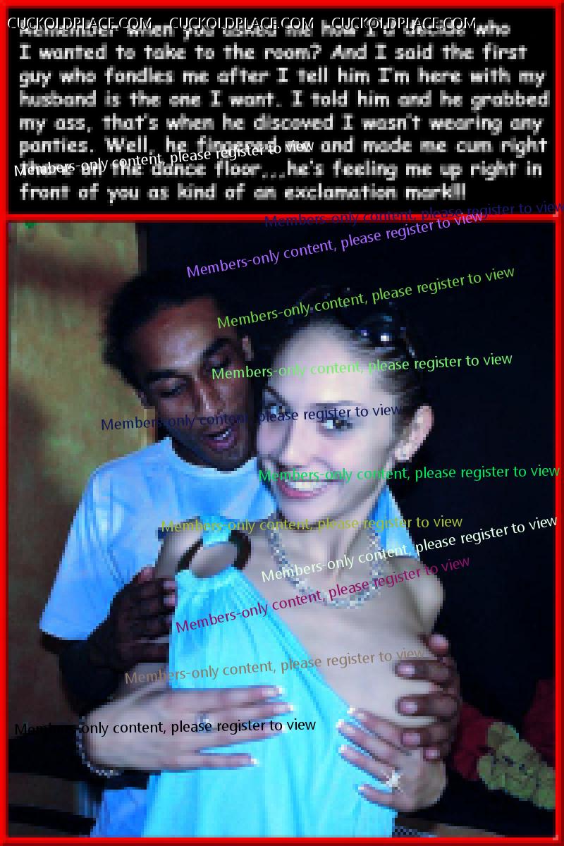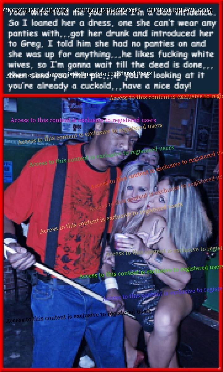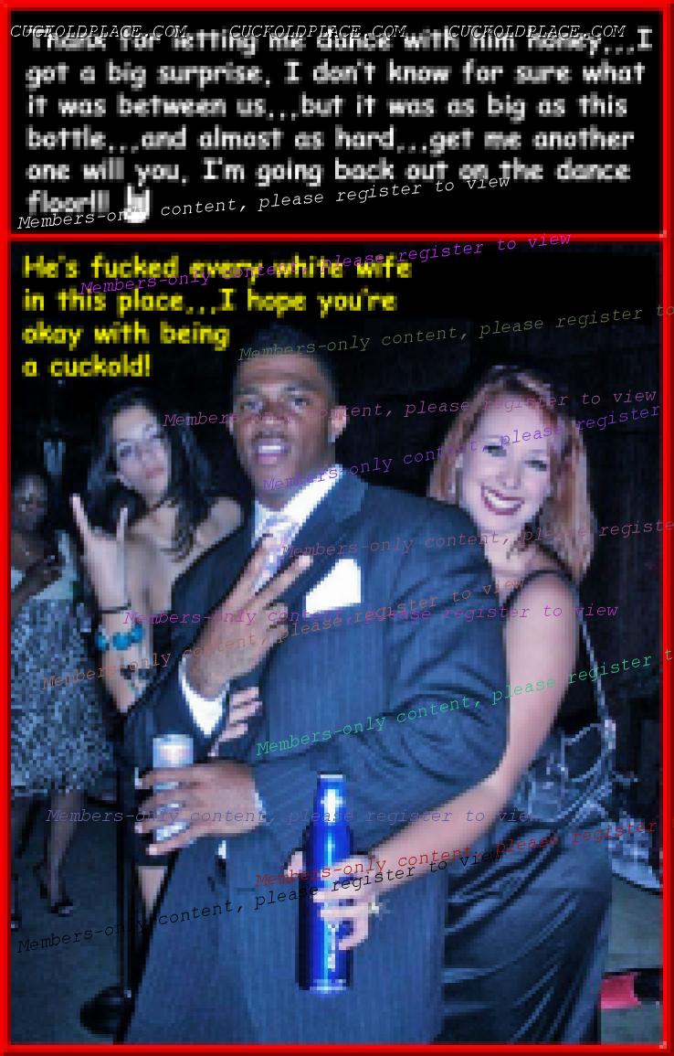 Pic #1,,,if your wife never gives you any indication that there's a reason to mistrust her, of course you can let her dance with other guys,,,just for the record, this is a strong indicator. Pic #2,,,He's just being a typical Alpha,,,she on the other hand is playing coy, she knows she wants to fuck him. Pic #3,,,Often beginner cucks need to go step by step,,,kissing and cumming inside his wife isn't usually on the menu right out of the gate,,,most bulls however, they live to take whitey's pussy, and it's even better when the wife wants to give it,,,in front of their husband makes it the "bomb". Pic #4,,,I love this one, mainly because my hub describes it as the single greatest thing he's ever experienced (and that covers a lot of territory), yes, I was the one who did it to him, the guy was about the same thickness as my hub, but about 3, 3 1/2 inches longer, more than enough to hit bottom, and apply pressure to my cervix, he actually went past it. From my point of view with twice the thickness filling me I was able to feel every inch, and having them cum one right after the other really warmed my belly.  Multi_Orgasmic Mary
