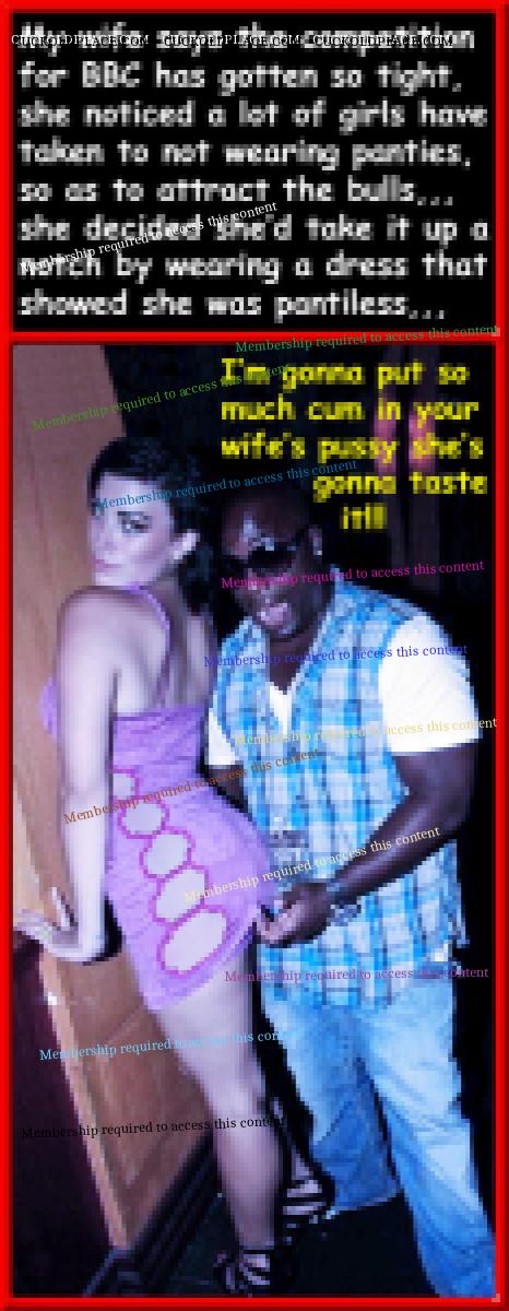 Pic #1,,,You have no idea how good it feels to already have your excuse established,,,now she can just concentrate on the reason she gave him that "nip-slip" in the first place. Pic #2,,,Judging from the twinkle in her eyes, and the aggression in his, unless you're into a lifetime of *********** and servitude, perhaps this would be a good time to pack your bags? Pic #3,,,Sometimes your wife's best friend can be a ton of help convincing your wife to go black,,,if she's a halfway decent slut,,,but sometimes that's not what you wanted,,,in that case you're screwed! Pic #4,,,Forget about Carnival,,,day cruises at Hedo II is where it's at!  Multi_Orgasmic Mary