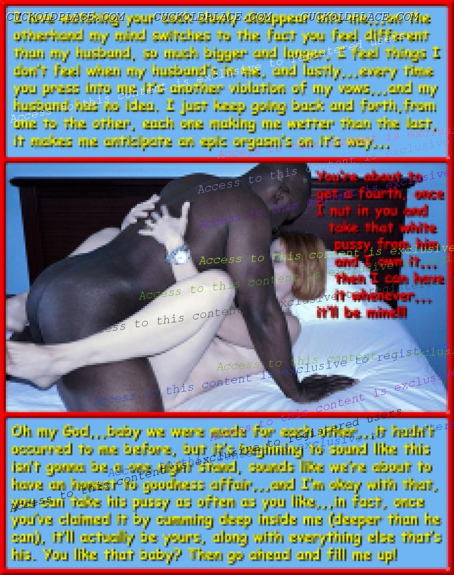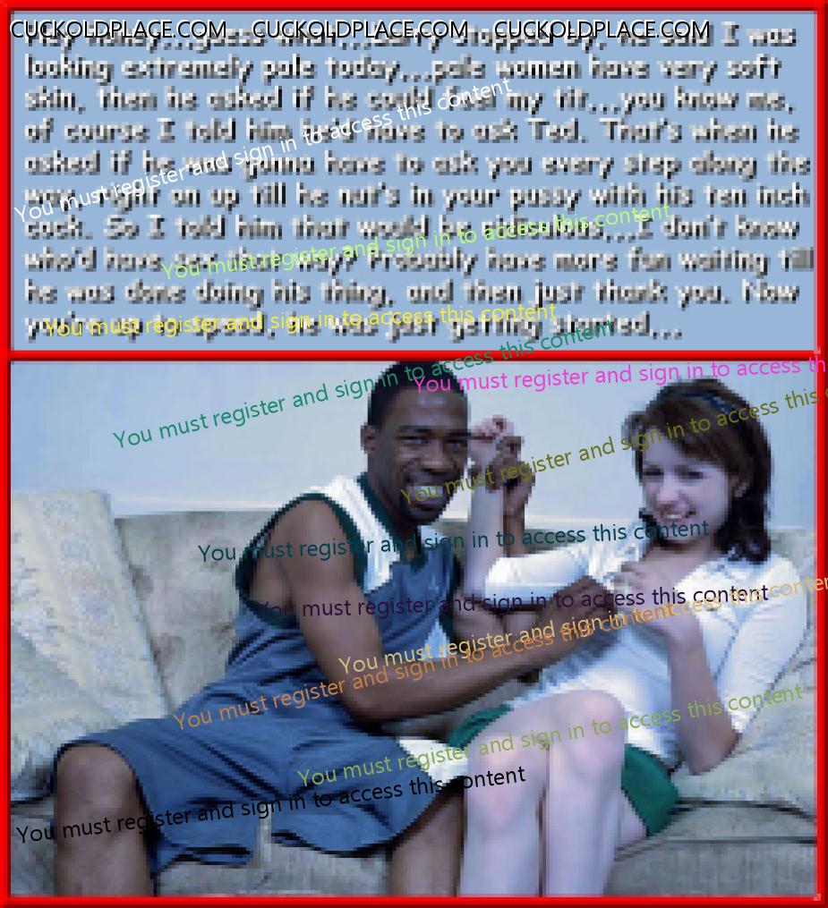 Pic #1,,,Although cuckoldry is taking place, and if everybody was in on it there would be three happy people,,,this feels more like only two people are happy and one of them has one foot out the door,,,sorry hub, maybe next time you'll suggest it and manage to hold on to a small portion of her. Pic #2,,,Even without an abundance of blatant clues, the only way you should let this happen is if you've already situated cameras throughout the premises,,,then it's a big hit in the amateur interracial cuckoldry genre,,,I'm sure she wouldn't mind if you posted the results, right? Pic #3,,,To most men who subscribe to this lifestyle they'd probably be thinking to themselves "this is all it took"? Pic #4,,,The cuck's at a crossroad, if he take road #1 he walks out and leaves them to it, if he takes road #2 in hopes of holding onto a small piece of her, he'll get on his knees,,,who knows, once that road is taken, most men simply make the adjustment, ever grow to like it!  Multi_Orgasmic Mary