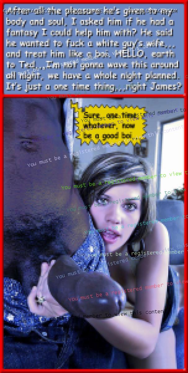 Pic #1,,,Back in my younger days, being ***** was not only the perfect excuse for questionable behavior,,,but it also went a long way toward relieving me of my inhibitions. Pic #2,,,Ah yes,,,that singular moment when she says or does something not realizing you can hear or see it,,,that's when it really gets real. Pic #3,,,My hub could probably give "Ol Ted" a few pointers,,,not to be cruel, it just kinda happened, a thick cock close to 11 inches felt like a bat, holding it at the base I slapped my hub upside his head multiple times with it, my bull and I laughed when I did that,,,I could see that happening here,,, Pic #4,,,Well,,,when her husband gets home she'll know one thing for sure, she's either got a cuck,,,or she's gonna be single,,,either way the black cock still prevails.  Multi_Orgasmic Mary