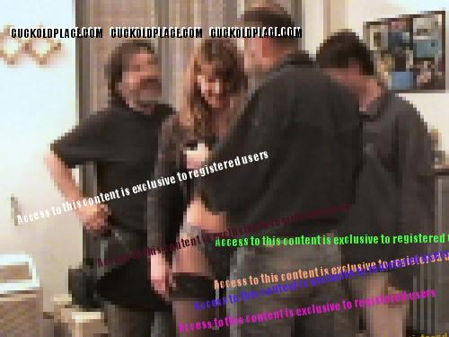 CuckoldPlace.com / Amateur Cuckolds / wife getting undressed by 5 men before being banged in all holes |