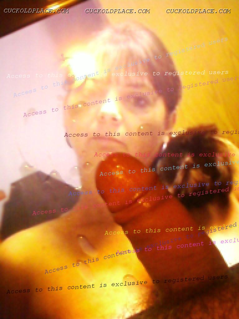 Fat bitch posing with my cock and cum