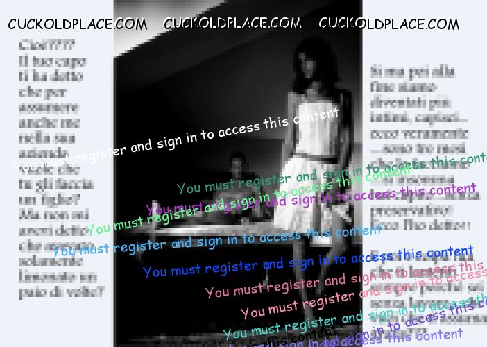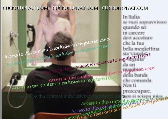 Ammiro molto la fantasia e le captions di Maxbracci: sei un grande! Io; Dario 55 enne, cornuto contento da 25 anni, mia moglie 48enne grande cornificatrice, adora i maschi giovani e palestrati (frequenta anche lei una palestra dove ha scopato con una decina di permistere), ha provato anche i Blacks di cui è rimasta entusiasta. Ora, da due anni, sta con un ragazzo di 26 anni militare nella nostra città che spesso viene a dormire da noi. Io non la scopo da due anni, mi sego continuamente, e loro mi permettono di godere solo schizzando nel water. Dicono che è il posto giusto per il *** inutile sperma. Desidererei avere ****** Captions con il *** nome, captions anche molto pesanti. Non ti fr problemi. Grazie!!!!