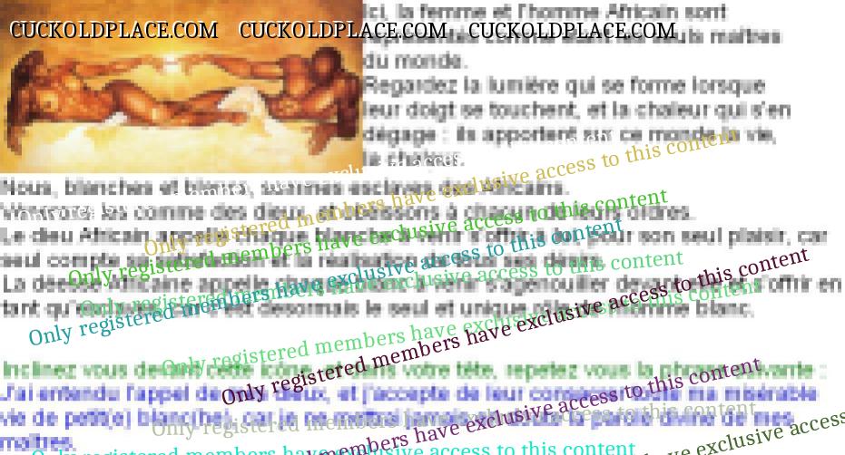 C'est une video tres chaude qui permet de bien comprendre ce que ressentent les femmes blanches converties a cette religion. Ce besoin d'etre dominee, bafouee, les voir traiter en tant que moins que rien ... C'est genial ! Prochainement, nous nous interresserons a d'autres rituels de conversion des blanches, et nous verrons ensemble a quoi ressemble le cote le plus primitif, le plus sauvage, le plus pervers, du dieu Africain ...