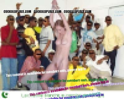 Assez vite Abdel s'est positionn� derri�re moi et m'a enfil�e. Je su�ais toujours les deux autres alternativement et les commentaires salaces sur moi ont encore redoubl�s. L'un apr�s l'autre ils m'ont bais�e sous l'�il de Nico. Abdou lui avait dit de se mettre � poil aussi et il avait ob�i. Il se branlait en me regardant jouir sous les assauts des trois mecs. Ils ne manquaient pas non plus de commentaire � mister sujet, le traitant de bon cocu qui aime voir sa meuf se faire troncher et autres trucs du m�me genre.