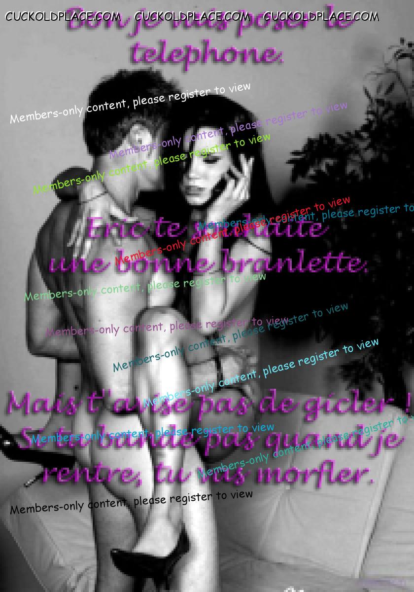 cbt_Exocet: ça motive à les poster Je sais ... tant de temps passé àfaire des vignettes "bien lechées" sans guère de commentaires, ce n'est guère motivant  alors je commente le post du soir ... j'adore le jeune couple ... rien de scabreux dans l'image tout est dans le texte qui permet de l'imaginer avec mister amant macho et monté comme un bouriquot .. la salooope ... En deux la nana qui est au téléphone ...toujours amusant le thème du petit cocu qui a intéret à filer droit ... sinon ..  Enfin, je ne me sens guère concerné et excité lorsqu'il s'agit de tourments physiques et non purement cérébraux .. donc le texte de la vignette du centre ne me parle pas vraiment ... mais je note la qualité esthétique de l'image