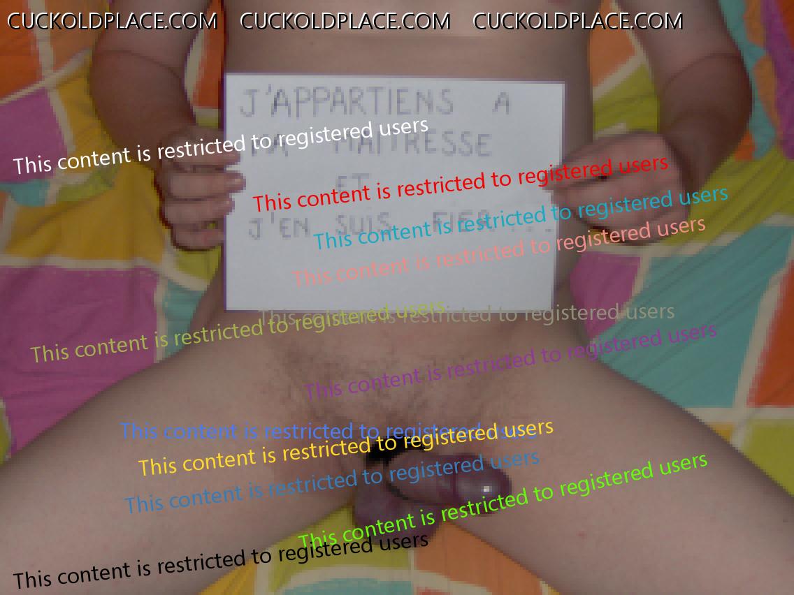 bonjour � tous, j'ecris sur demande de ma maitresse femme qui fait de moi ce qu'elle desire. Elle aime me ridiculiser et me faire COCU avec des inconnus. Jusque l�, je l'ecoutais au t�l�phone, g�mir et jouir avec un autre dans une chambre d'hotel. Pour le prochaine �tape, elle tient � ce que je sois pr�sent dans la chambre et que je la vois faire l'amour avec un de ses amants, sans que je puisse participer. Je vous ferai parvenir des photos de ma maitresse si vous le desirez et qu'elle accepte. soumi et cocu volontaire à MA REINE