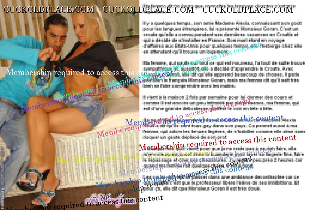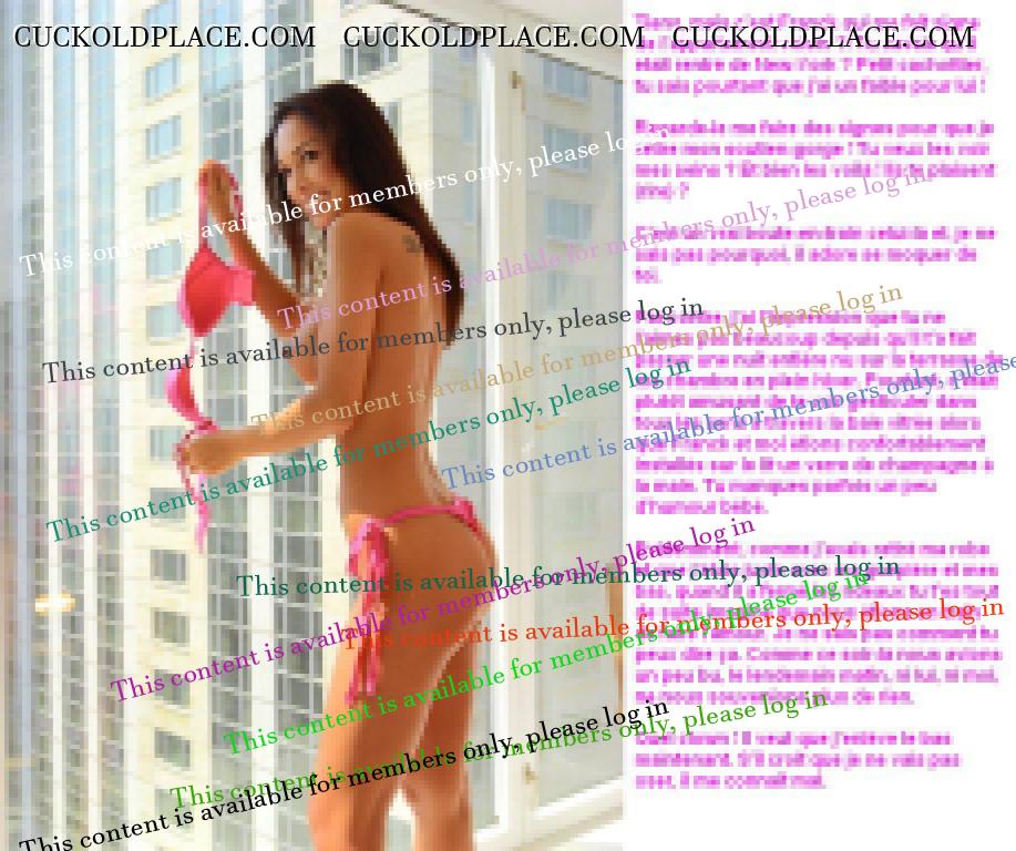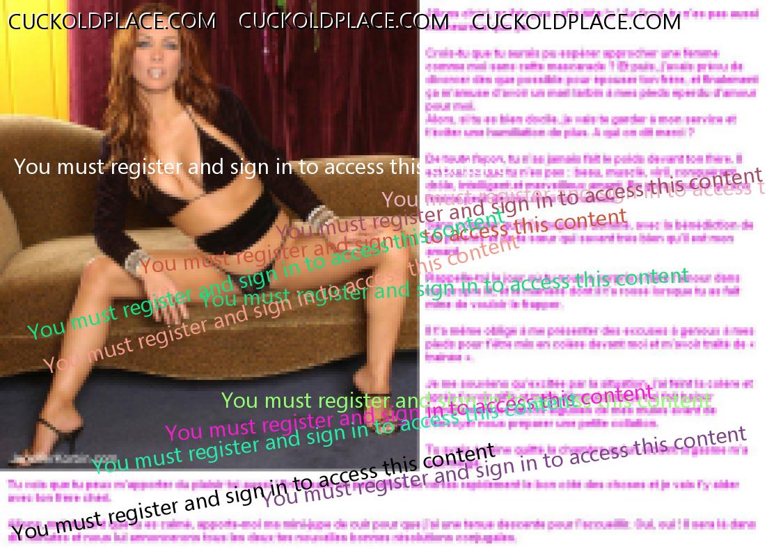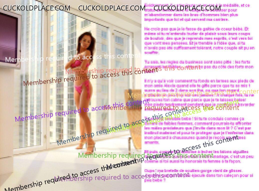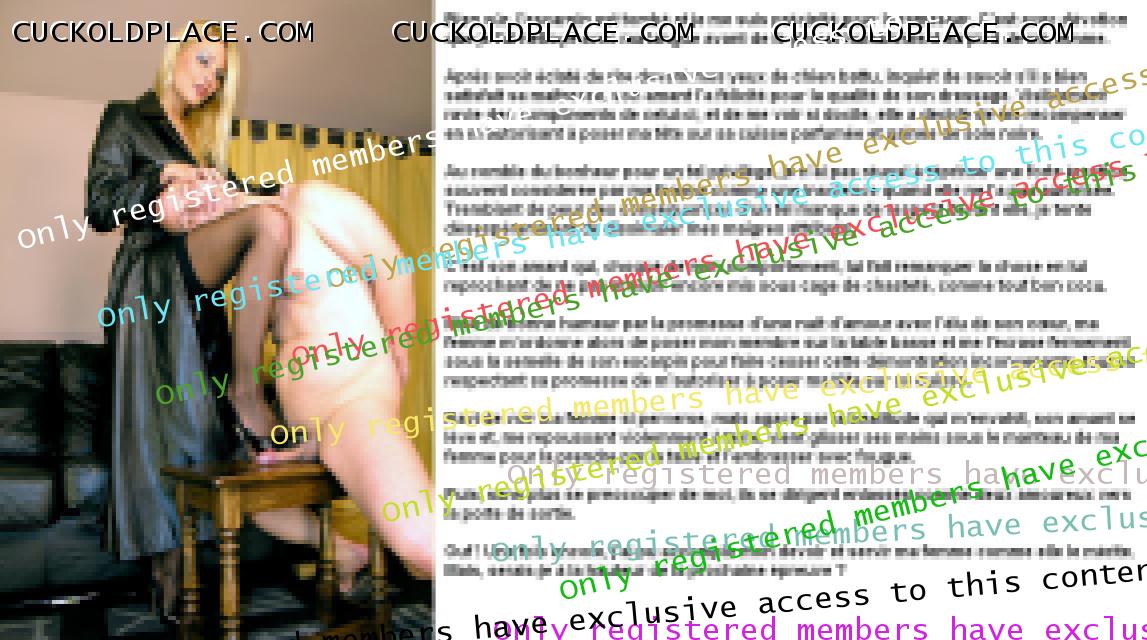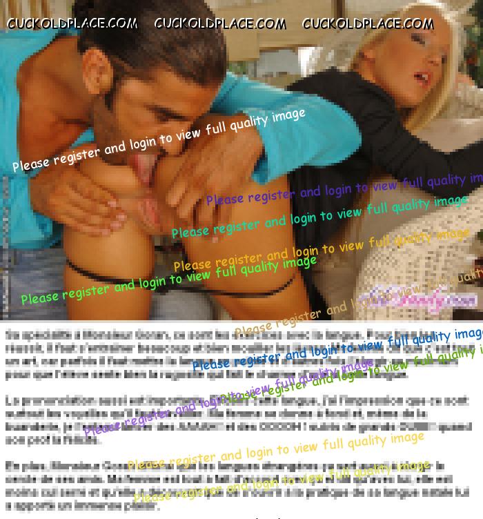 Merci pour tes encouragements GIL. Ca me fait très plaisir, surtout venant de toi. Je suis alle voir ta production... WHAO !! En effet, tu sais de quoi tu parles. Ceci dit, pour etre franc, je ne travaille pas que pour le plaisir des autres. Realiser ces series sur mon fantasme favori (d'ailleurs plus qu'un fantasme puisque je suis vraiment cocu) m'apporte beaucoup de plaisir et mon ego est tres flatte quand il recoit des compliments comme les tiens. Du coup, j'en ai pondu un autre un peu plus leger que les derniers. Question habituelle : vous aimez ? LOPETTE PS : je te comprends pour les accents, c'est vraiment chiant.