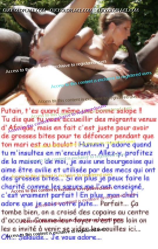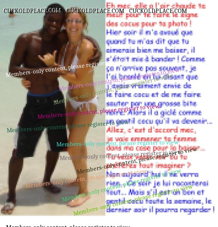 Très bon ! C'est amusant de retrouver des images qu'on a déjà utilisées avec de nouveaux commentaire. Saloperencontre, ta troisième image je l'avais traitée c'était la N° 1118 ! Visible ici : https://www.cuckoldplace.com/16_60237_154.htmlAujourd'hui, la 2024 Voilà des vacances qui comment bien...
