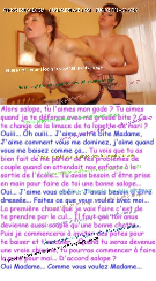 Excellent !  J'ai trouvé récemment la photo de ta seconde caption et elle est dans ma liste des "à faire" mais j'ai un peu d'avance alors on la verra dans 2 ou 3 ans !!! LOL ! La 2162 Quand on trouve une bonne salope, il faut en profiter, elle ne demande que ça...