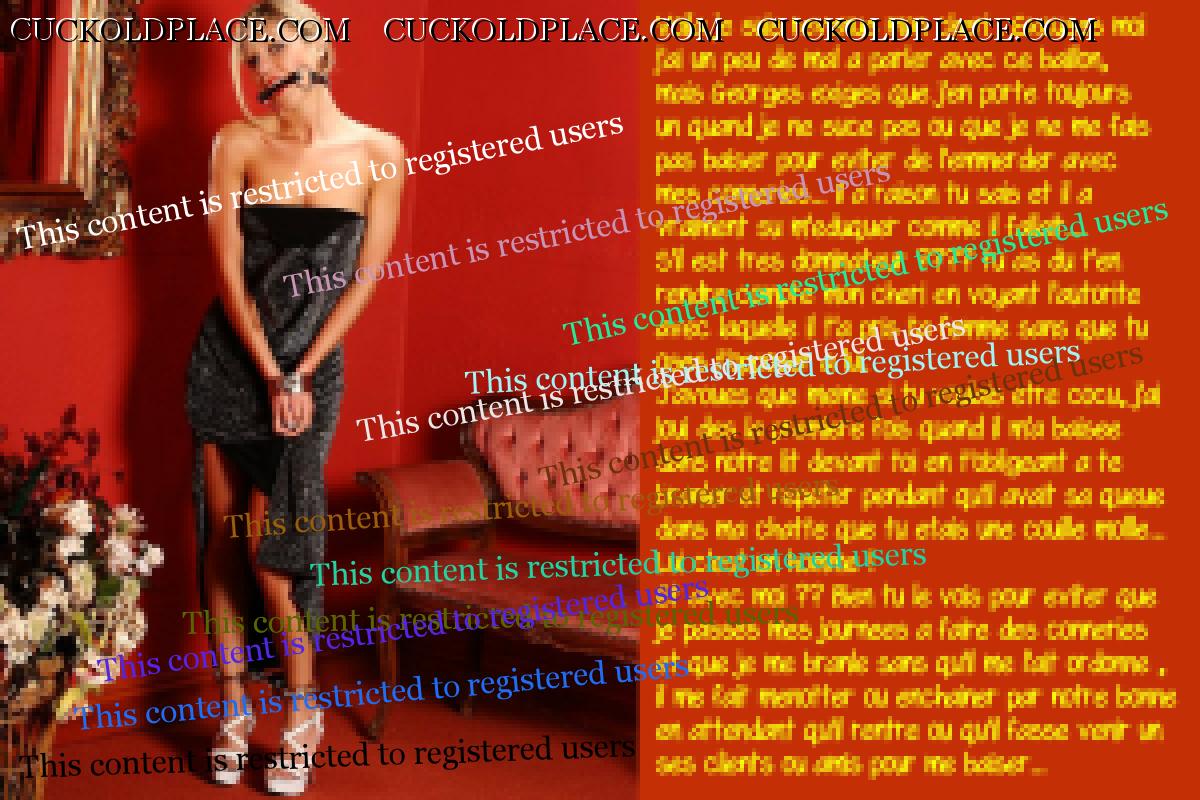Et la 3316 La salope est contente, elle a trouvé un cocu/lopette à dresser et il ne la baisera jamais... Par contre, elle va prendre plein de grosses bites dans tous ses trous de pute...