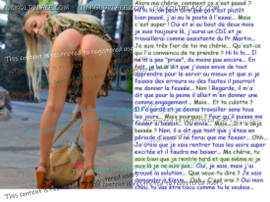 Et la 3847 C'est important quand on est une salope qui s'apprête à faire cocu s.on chéri de prendre tout de suite l'ascendant sur lui pour qu'il comprenne bien que désormais il sera une lopette...