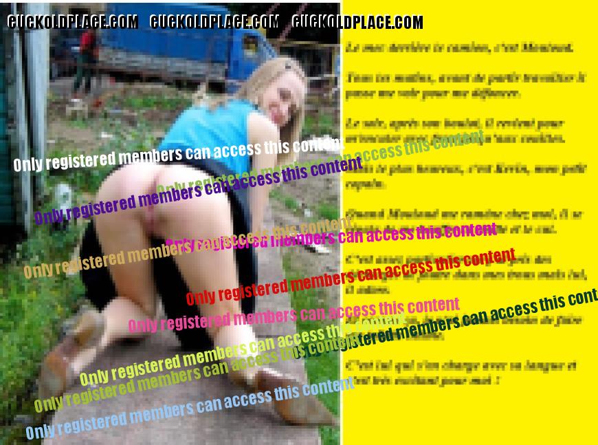 Aujourd'hui la 4373 La salope va rejoindre sa copine pour faire la pute sur les chantiers pendant que s.on cocu sera dressé en lopette voir lope à mecs ! Bref, le bonheur...