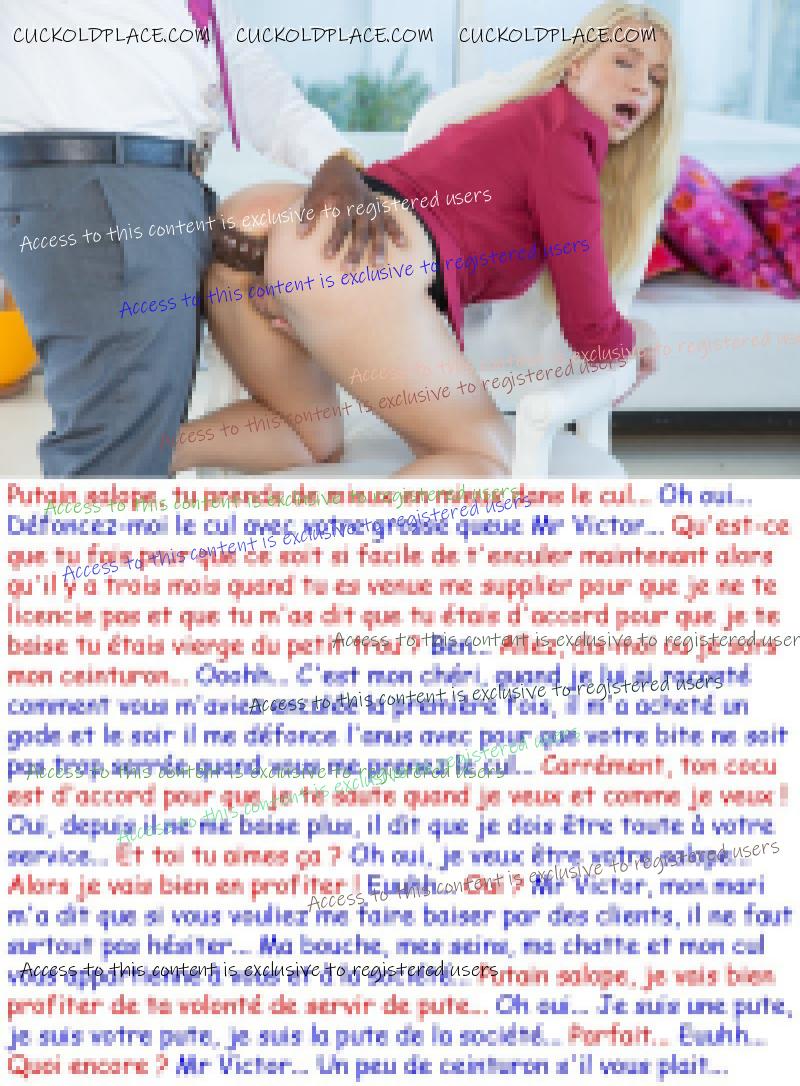 Aujourd'hui la Numéro 5357 La salope est heureuse ! S.on cocu lui a trouvé un salaud à grosse bite qui va en faire une vraie pute !
