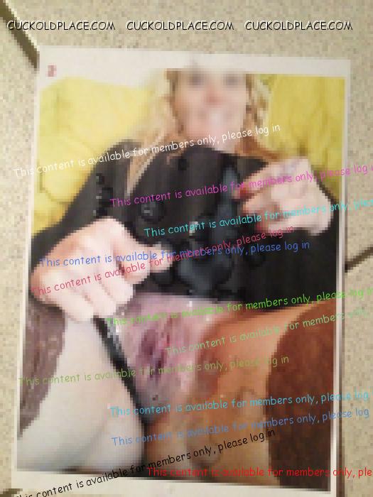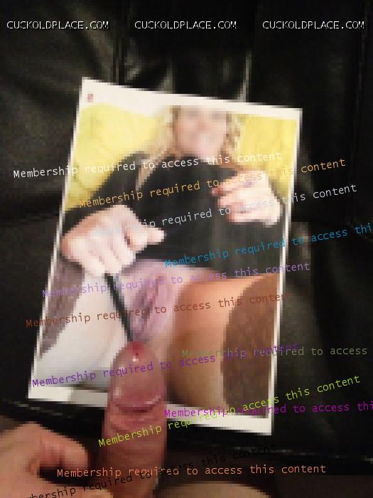 J'ai enfin eu le droit de me branler ! Après 20 jours, j'en pouvais plus, je pensais pas que ça aurait été si dur. J'avais hâte de pouvoir enfin lui juter dessus (puisque je n'ai pas le droit de la baiser, qu'elle me suce ou que je l'encule). J'attendais avec impatience, je me demandais ce qu'elle m'avait préparé. Elle était au boulot hier et m'a dit que c'était le moment. "Hein ?" Elle m'a dit d'imprimer une photo d'elle qui m'excite et que je devais me vider les couilles sur cette photo. Moi qui pensait qu'elle allait au moins me le faire "à la main"... Je me suis exécuté, pendant ce temps, elle m'envoyait des SMS super sex où elle imaginait se faire baiser par Lorent (un mec avec qui elle est en contact). J'ai pris un pied d'enfer, heureusement qu'on a pas fait ça par téléphone, ce que je disais n'était pas très joli à entendre. Une photo avant et après :