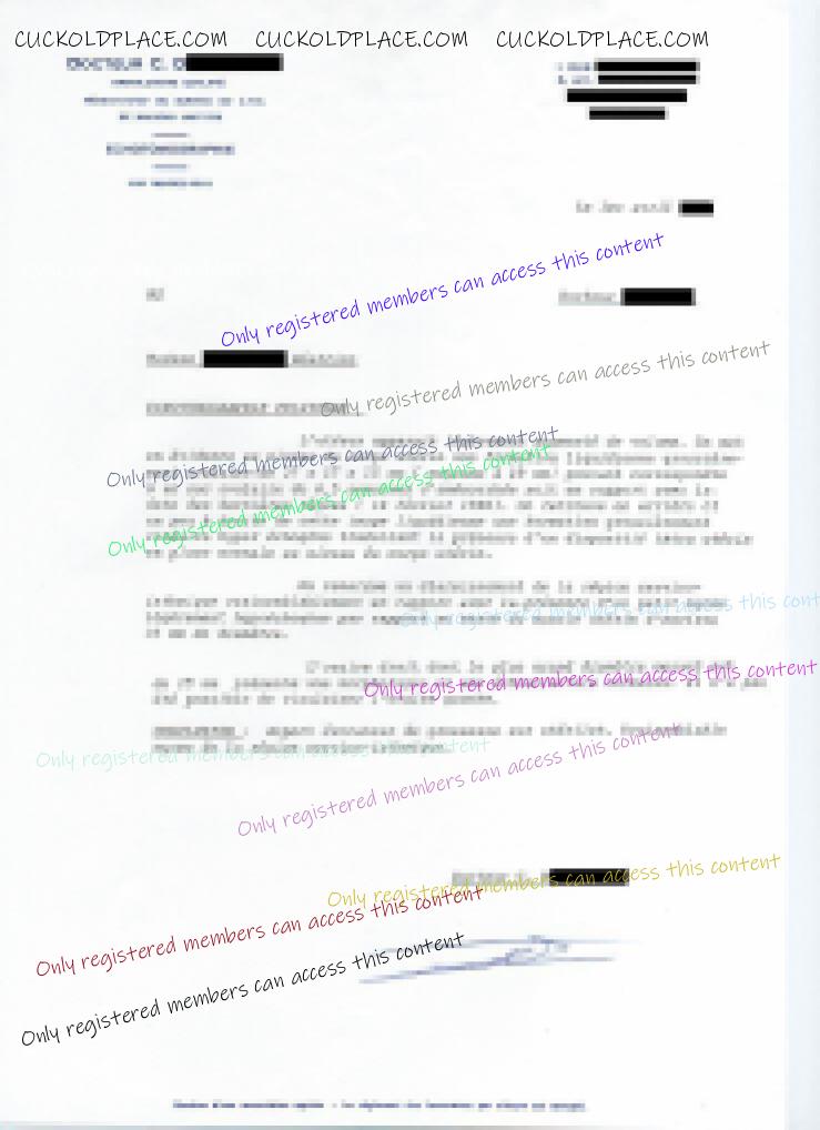 Comme je l'ai dit, un mois plus tard elle �tait enceinte et le m�decin qui l'a examin�e a fait remonter le d�but de sa grossesse deux semaines avant notre mariage soit � la limite de sa rupture avec mister amant d'alors. Comment s'�tait pass�e cette rupture? je ne peux pas le dire franchement mais au ton de la lettre il y avait beaucoup de regrets chez le gars.