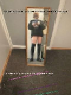 Peter C: I wonder if that's why my girlfriend has just got me to buy her some long black boots... martinr: Of course. They weren't for you, were they? Well, except to look at when she wore them to make your cock hard and painful. Were they heeled or flat? Actually that doesn't matter. A woman still looks hot in the right flat boots. It's the way her calves are encased that signals to other men: "Look at me. I'm seeking attention. I want to me desired. I want to be fucked". With you in mind particular Martin, here are two photos my girlfriend has sent me of her trying on her new black boots. She never wears a skirt or dresses so this a major step forward, her willing now to go out with her bare thighs on display. I'm sorry the quality isn't great. I'll try and get her to pose for some better photos soon. She's 46 so definitely belongs in this section. Peter C