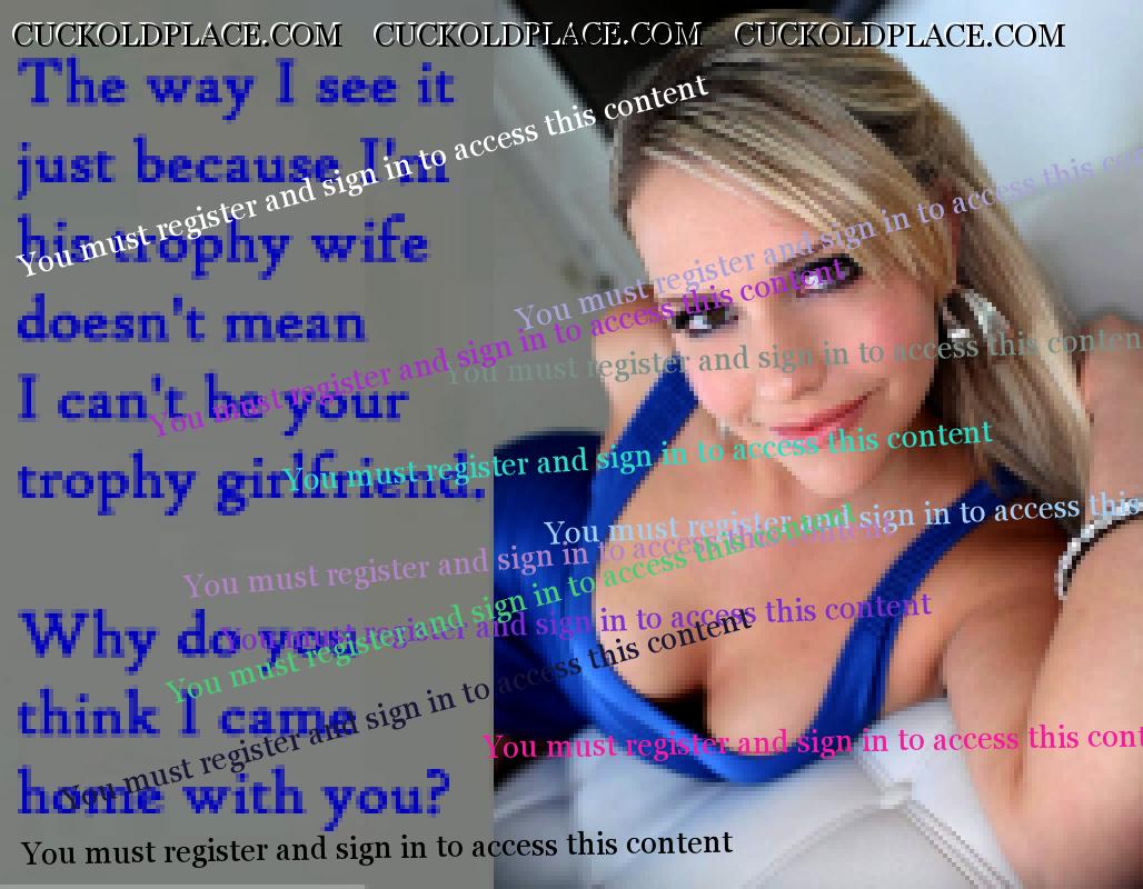 i122 We've been role-playing more and more about her "reserving" her pussy for others. We enjoy the fantasy that one day she may get so hung up on a guy that she only fucks him, and I have to settle for BJ's and HJ's. Thinking about another man getting her pussy exclusively, while I get none, makes for a much quicker hand job and a two-towel cleanup...  I encourage the role-play. The more we role-play about something the more she gets into it, and eventually she seems to actually adopt that way of thinking. Our pillow talk now is constantly peppered with comments from her about "hoping I can handle it"... and "we'll see if you really like it". BTW, the guy she's meeting tonight is new. Her policy is just cocktails the first meeting. However, there can be an exception if they have strong chemistry, and she reminded me yesterday that it's always possible. But most of the guys she's met lately have been lame. So I don't get my hopes up. I don't rule it out either. cuckold - Pronunciation - kuk-uhld - noun 1) The husband of an unfaithful wife. 2) A husband whose wife has sex with others. NOTE - It does NOT say: Sexually confused, submissive, humiliated, sissified, crossdresser, cocksucker, or piss drinker