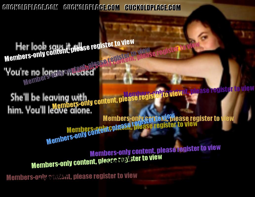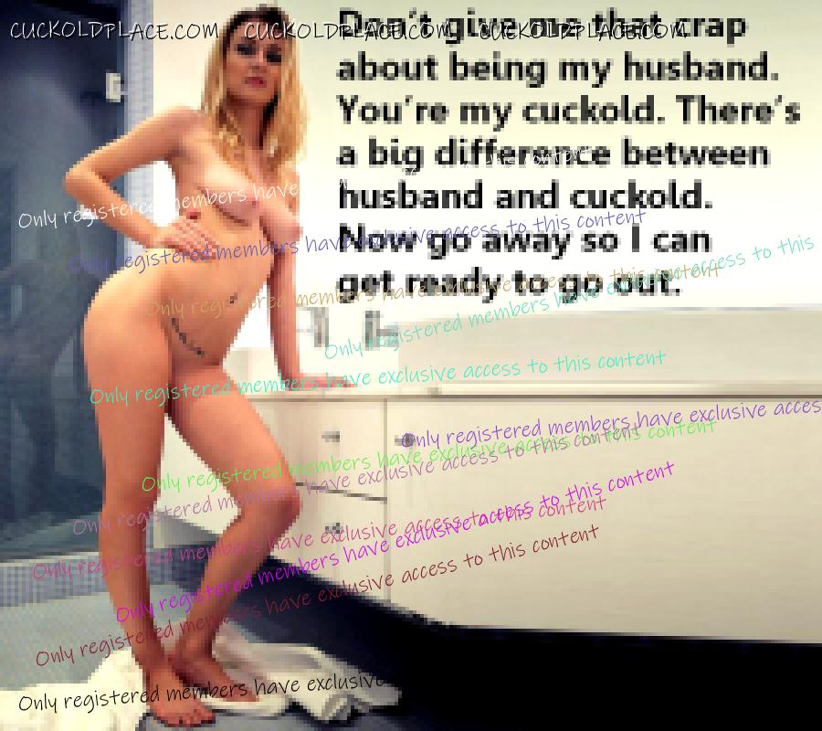 My caps reflect scenes that are relevant to us at the time. Yesterday she said she has a fantasy of telling me to drive her to a local hotel, one night while we're out. Unbeknownst to me, she will have pre-arranged for a guy to get a room there. She and I first go to the bar for a cocktail. Then she tells me she'll be in Room #XXX fucking someone for a couple of hours, and that I'm to wait at the bar until she comes back. So I sent her these caps... which she loved cuckold - Pronunciation - kuk-uhld - noun 1) The husband of an unfaithful wife. 2) A husband whose wife has sex with others. NOTE - It does NOT say: Sexually confused, submissive, humiliated, sissified, crossdresser, cocksucker, or piss drinker