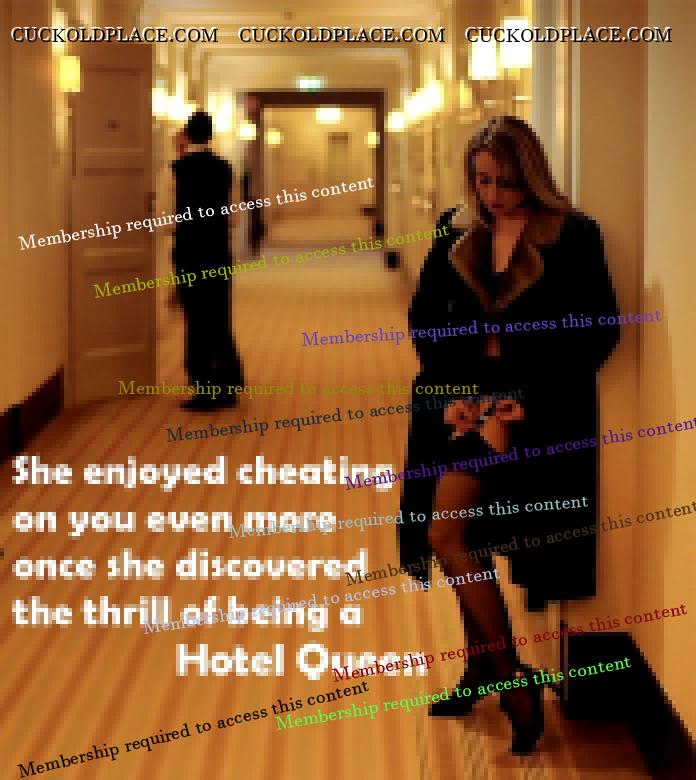 I have a Hotel Queen that I meet quite often. So often the front desk personnel recognize is as soon as we walk in. Hotel sex is awesome! The only way it would be better was if her husband drove her there and rented the room for us.