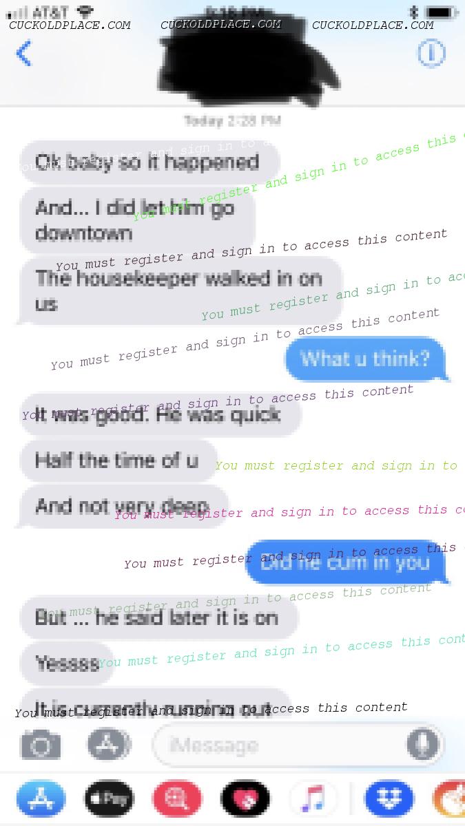 Ok. Glad to see some people are enjoying this story because it's 100% real and in progress RIGHT NOW. And yes, I can post more pics of her nylon feet and I will. So anyway, my wife went to A's hotel room Thursday after ducking work early. I was at home wondering if they were fucking or what. So the original plan was for her to go to his room and then go straight to her hair appointment afterwards without updating me on what happened. I wanted her to tell me in person the hot story. Lo and behold though at about 4:15 that day she calls me. Ughhh she wasn't supposed to do that. So I answered and she tells me that she's stressed and frustrated because all they did was kiss and touch each other and A was reluctant to try and bed her. She said it got hot and heavy at the end but then she had to leave and they had such a hard time prying themselves away from each other that she was running late with a 50 minute drive ahead to the hair salon and a frustrated pussy that didn't get any dick. Fuck, I thought... this guy is going to be a waste of time. Later, when she arrived home we talked and she told me in more detail what happened and what they talked about and so forth. I told her that now I was kind of down on the whole thing because it seems like this guy isn't going to come through and quite honestly I felt like even if he finally did, he wouldn't be worth a damn in bed. She said please be patient and try not to be pessimistic. She said she felt his hard dick through his pants and that if she hadn't had to leave, they would have fucked. So I said ok, I'll be patient and try to be more optimistic. The overnight for Saturday (today...right now) is still on as planned. She wanted to have sex with me to take the edge off but I had been waiting for her to get home to run an important errand so I said sorry, I have to go and I won't be back until she would probably be asleep. She gets up at like 4 am to get ready to go to work so she goes to bed pretty early most nights. So off I went and she went to bed. The next day at work, A had to have a meeting with K about the upcoming workshop (the "whole reason" he had come to the US) in her office. She told me that they talked work the whole time except the last 10 minutes. From there they talked about their plans and what had happened quietly. She said if they spoke in normal voices that someone could have possibly heard them which is bad. A told her not to be discouraged that he was tired from a 15 hour flight and that he felt pressure to do it on demand in a short time frame. He said he was excited about their getaway and that he wouldn't disappoint. K told me all this in a text and told me some more when she came home from work. She said she was excited the whole time she was in her office with him and that her pussy was getting wet. She she wished they could've fucked right there in her office but they never touched each other once which is good. None of this **** would be even close to worth it if she were to lose her job. So now it was on to Saturday...today as I'm writing this. She got up this morning at about 6:30 and started to get ready little by little. The night before we picked out her dress and her panties and bra. The plan was for her to leave at 9, drive to his hotel and have him come out and meet her at the Starbucks next door. Many of his colleagues it turns out had also checked into that same hotel which they had tried to avoid but to no avail. And although if K were spotted there and with him it would necessarily be a problem (she's allowed to be friends with whoever she wants, he employer doesn't take issue with that) they thought it best to try and stay out of sight. At a little before 9 A texted her that he had to participate in a business call that would set him back until 10:30. So K waited an extra half hour to leave. We kissed goodbye at 9:30 and I told her good luck. She said she was nervous again. She said she would keep me updated somewhat and let me know she was ok periodically. At about 10:15 she texted me that he said all of his work colleagues were gathered in the lobby and for her not to come to the hotel. They decided he would just Uber to meet her at the train station. She wanted me to check on parking overnight at the station because the plan had been to leave her car at the hotel but that was out. I told her it was no problem that it was only like 6 bucks. Then she said because A got hung up, they missed the train they wanted to catch and the next one wasn't coming for 90 minutes. So they decided to Uber all the way down to city. She texted me that they were in the car and on the way at 11 am. She said she'd text me when they got there. 90 minutes later no text so I started to lay into her over text about following through with what she said she was going to do. I didn't tell her she had to text, she said she would so it pissed me off a little bit because we had an understanding I thought. Here is the text...  They got right