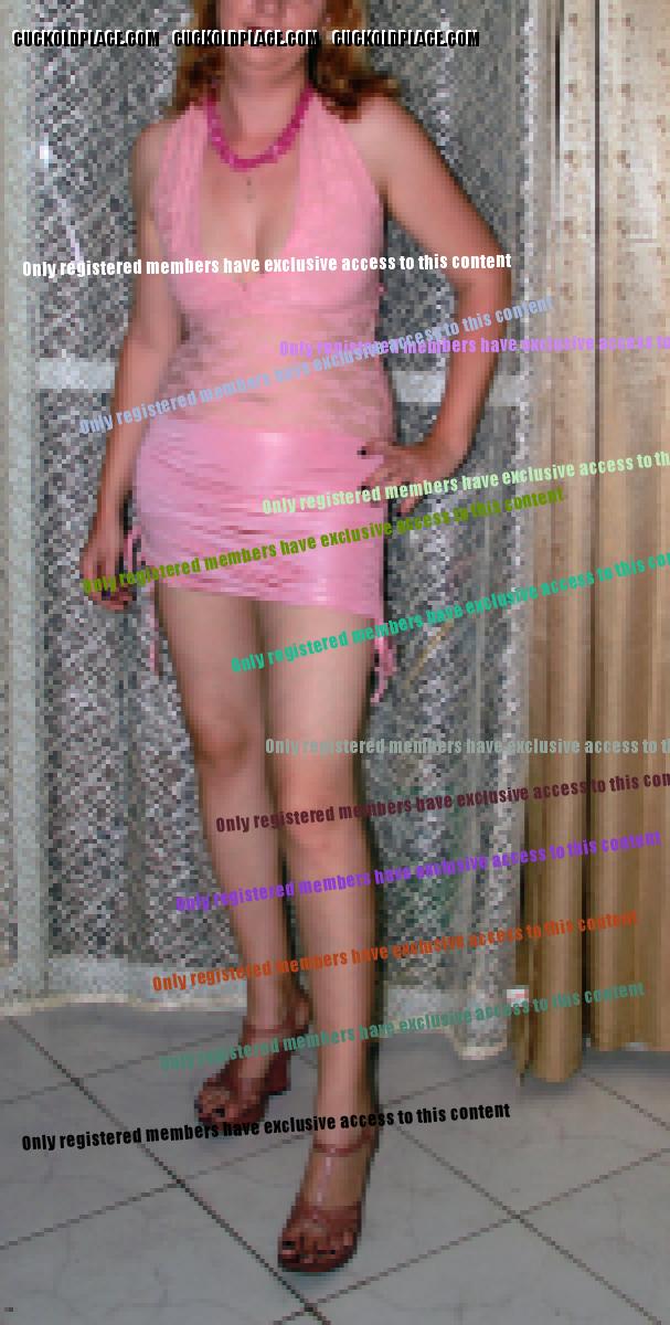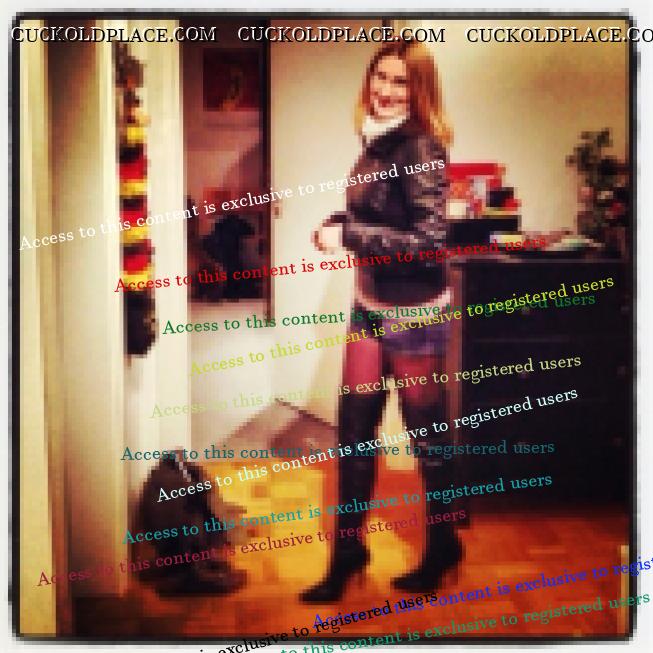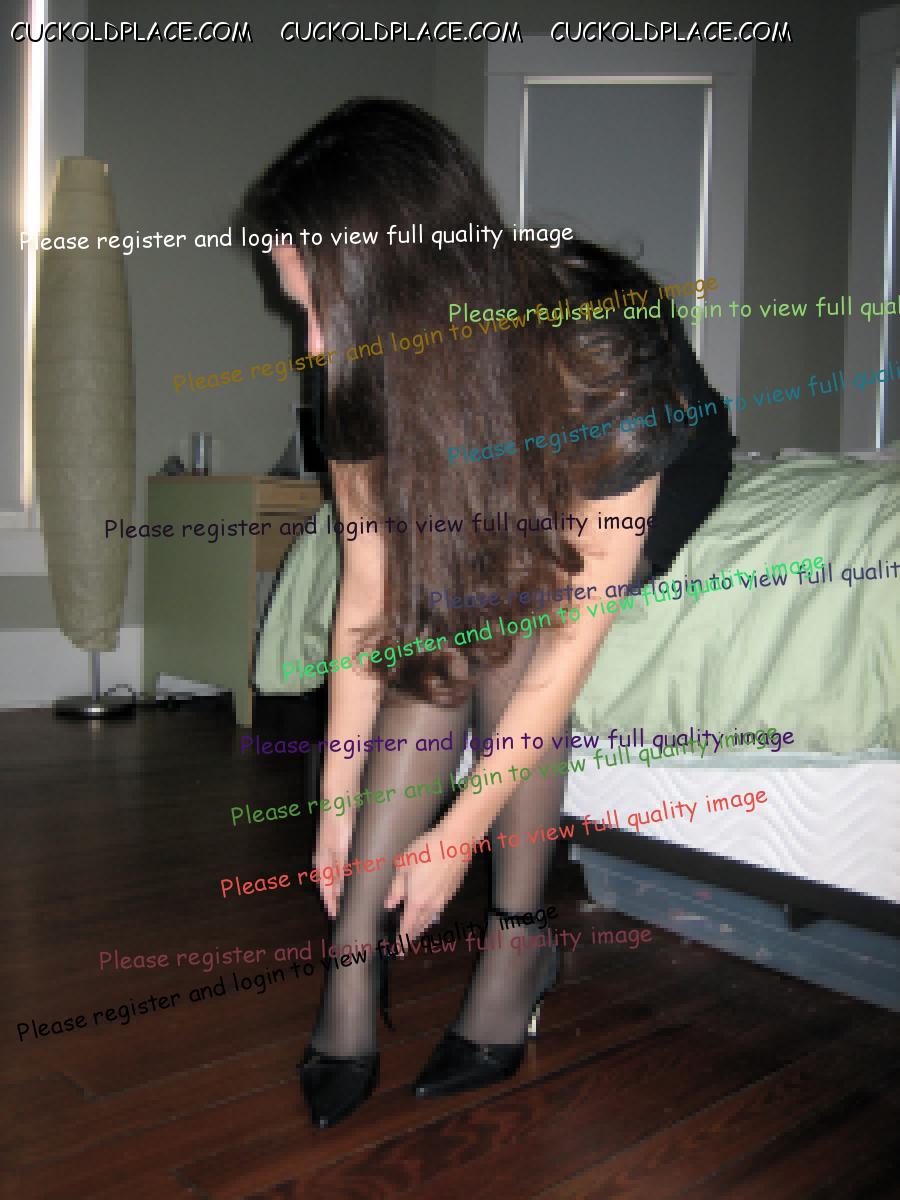 Here is my wife getting ready to go out. Moments earlier I licked her to orgasm then she did her make-up and hair nicer than she ever does for me, put on her hot pink bra to go with low cut pink top, lacey black panties under tight jeans then put on the pink 5 inch wedge platforms I bought her just for the occasion. She looked so hot, I wanted to strip her off again but I wasn't allowed to mess up her efforts. Returned after 1am but I wasn't allowed to fuck or suck her. She told me "You're joking if you think that's gonna happen" then cleaned her face and went to relax straight after, completely worn out.