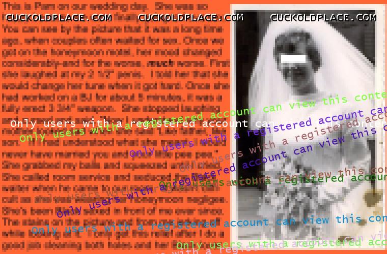 Hello. My master i away just now but he instructed me that if there was any interest in the photo of my wife in her wedding dress, I was to post this more recent pic of her and invite any of you who want to ask any intimate, permisteral questions about her to email me at my very appropriate email address of [email protected]. My master may direct me to send more photos to those who respond but I have none of my wife unclothed as she does not allow me to see her in that state of undress, let alone allow me to have photos.