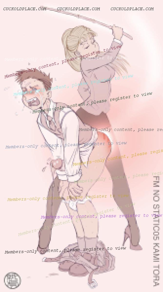 And basically ever since, that's how things have gone. She has gotten super into cuckolding. She got me a cage about 2 years ago and we've gone through a few different ones since then. It's a challenge with kids; we make sure it all stays private and secret, which can be difficult. She encourages me to suck myself and cum in my own mouth. She usually only pegs me when we've got plenty of privacy, but she really gets off on that. She's had several gangbangs now, lots of threesomes. Lots of DP and DVP. She is very into cleanup. She likes to call me her little cum cleaner and her self-sucking cuck. She likes to tell other guys that I'm her cuck. Also, when we meet swinger couples she quickly lets them know that we don't swing because I'm just a cuck. But she isn't into bi stuff. She likes all the attention and likes being the only one who gets cock or gets to fuck me. Several guys have brought up bi stuff or asked about fucking me and she says no. She told one guy that she's the only one that gets to fuck my ass.