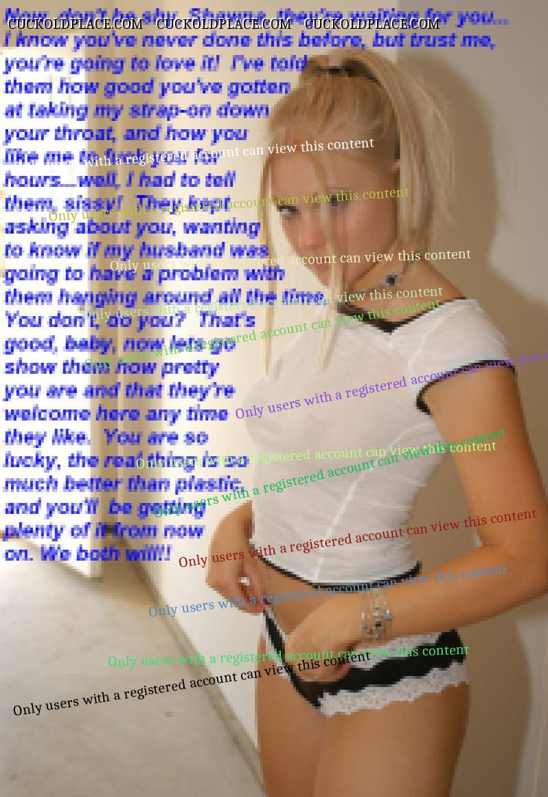Shawna, just needed to add to the positive comments. You are one of the best captionists in the group. Please keep up your sensational work. I never fail to cum after viewing your humiliating, sexy, arousing captions. Thank you for being so smart with your dialogue and using such hot pics. I am totally addicted to your creations, please satisfy my insatiable cravings. I just love the series and new baby sissy themes in your latest work. Guess I am just totally perverse in my taste.