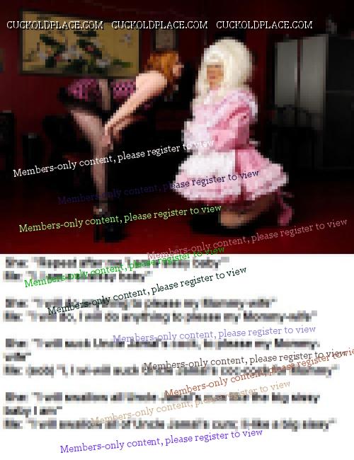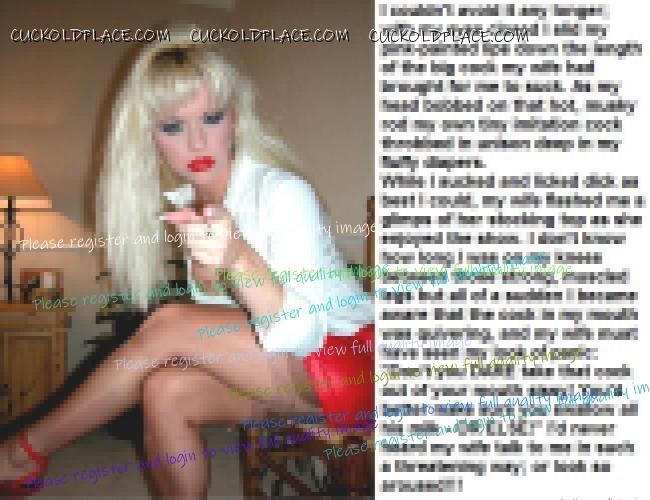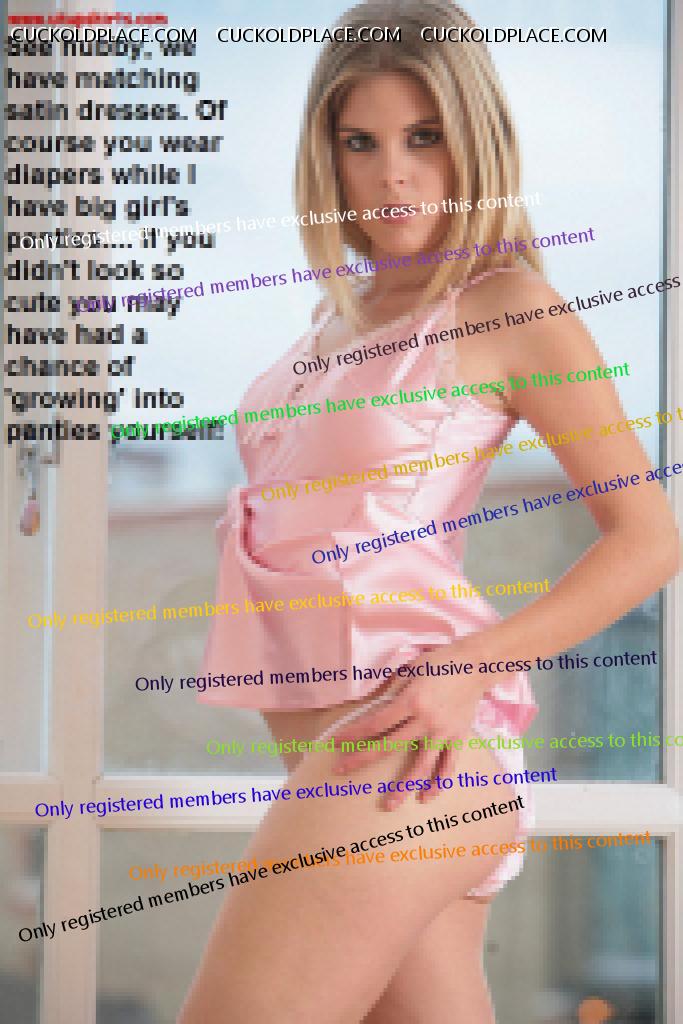 Can anyone caption these for me?The last one should be a wife talking to her sissy baby husband teasing him about how he is dressed and how big her lovers cock is compared to his 3 inches...PLEEEEEEEEASE.