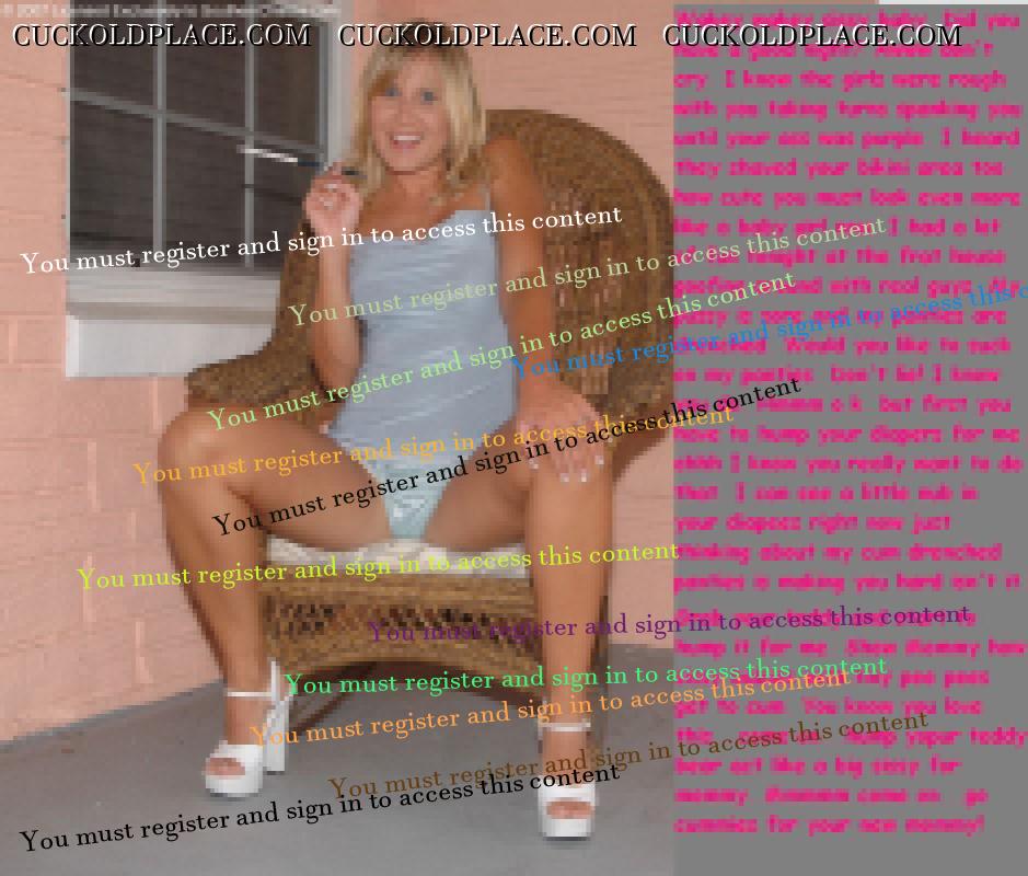 i once new a pro dom that insisted on calling me sissy baby and me calling her mommy (well i wasn't exactly objecting, in fact i was paying), i had so much fun with her and very little inhibitions, alas she moved and i have not seen her for a couple years. she was a much darker and mysterious woman than the cute young girls you have in these captions though. still brings back those great memories, really likin the thread, thanks keep it up.
