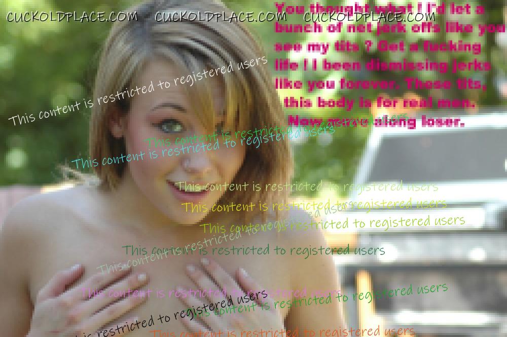 A great thread. Perhaps you could do some with older women looking at the camera with her demeaning words.