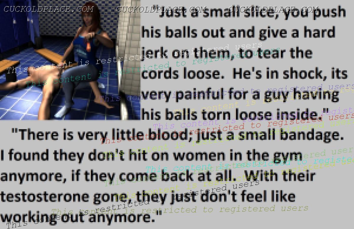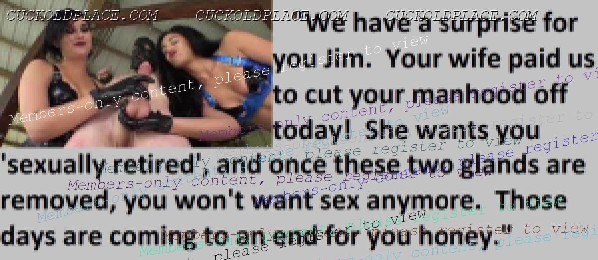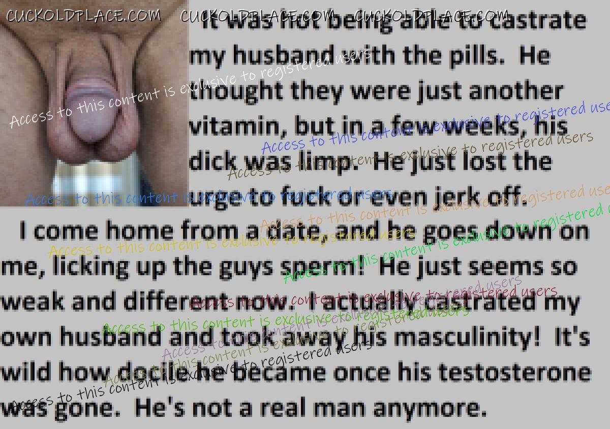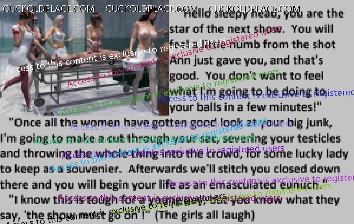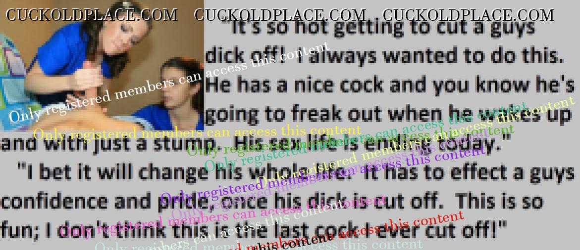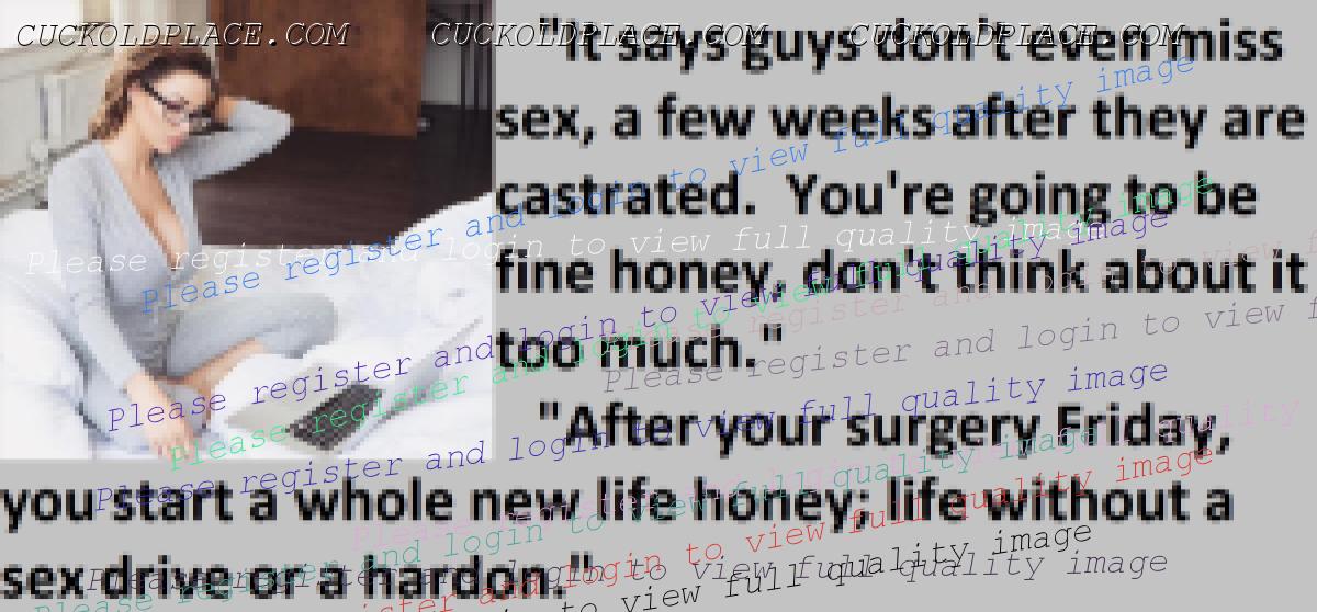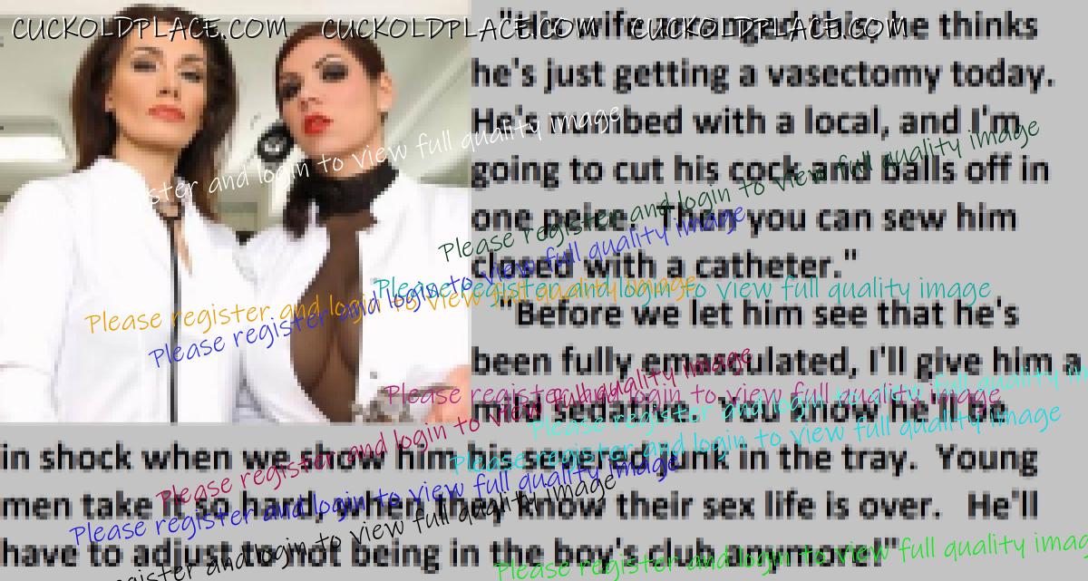 Great caps!!! I love the penectomy themed ones. The idea of testosterone coursing through my veins with no cock to satisfy my urges... Pure cruelty.