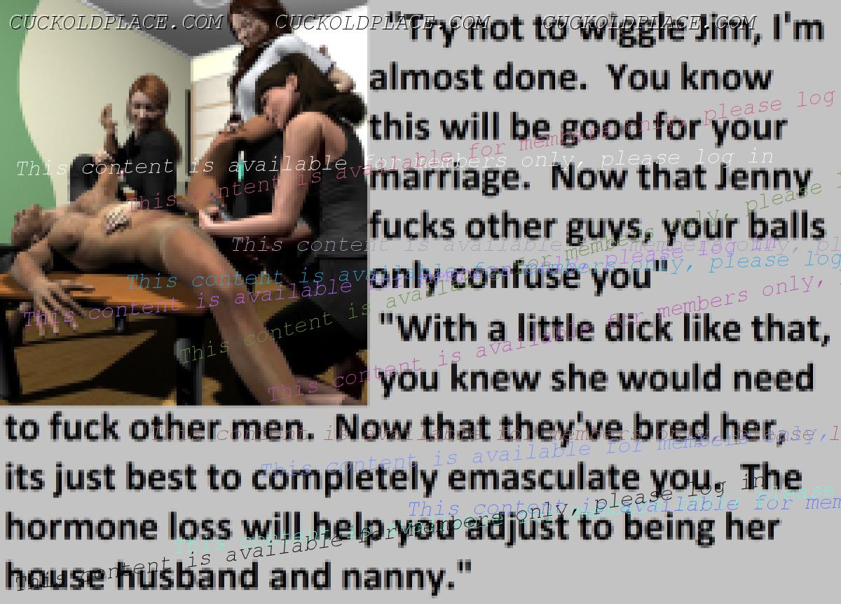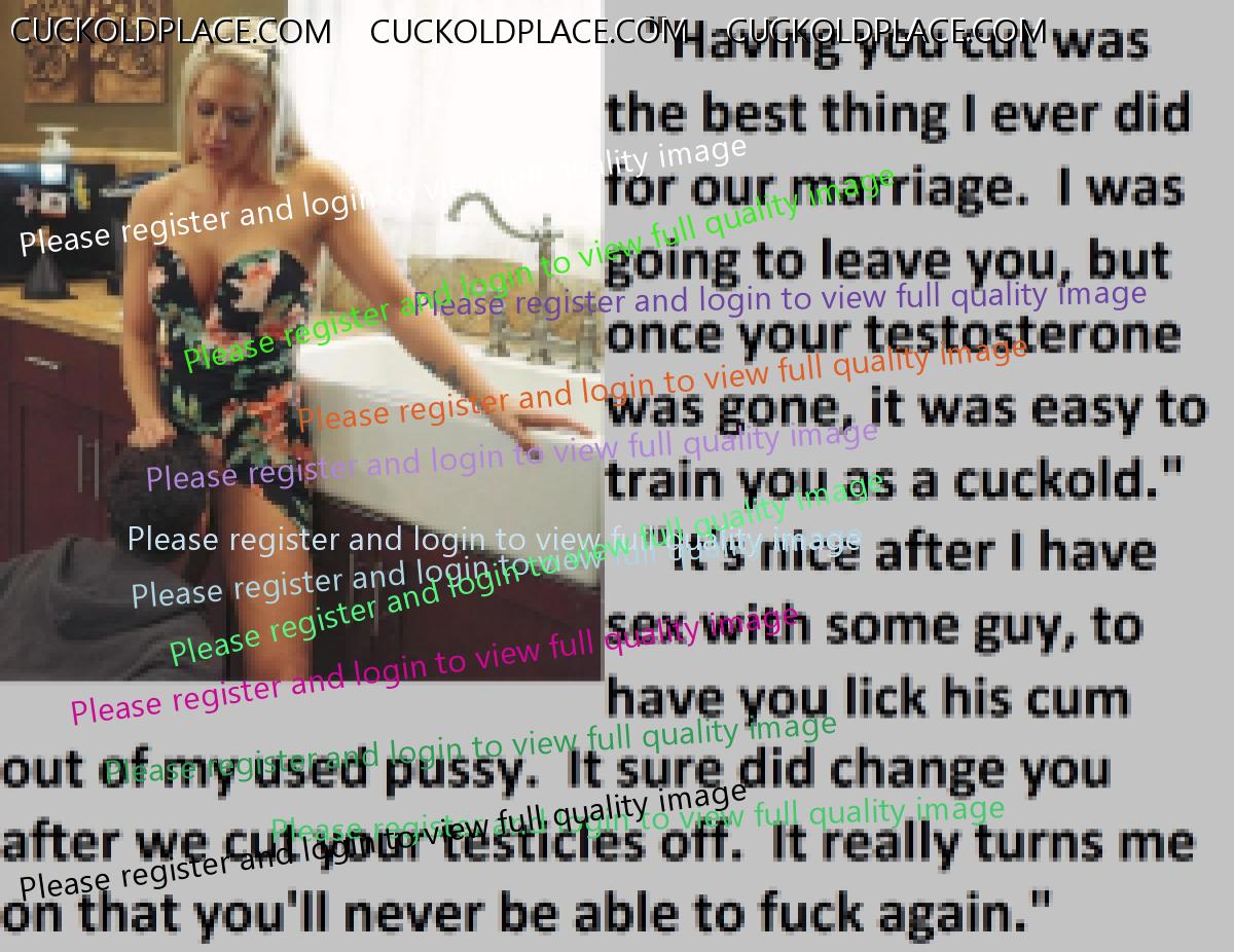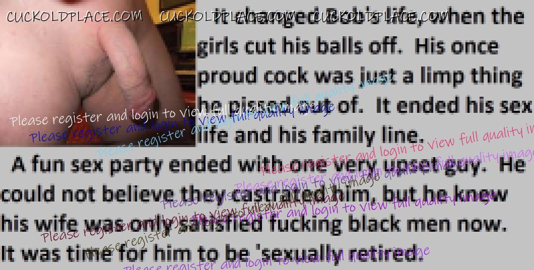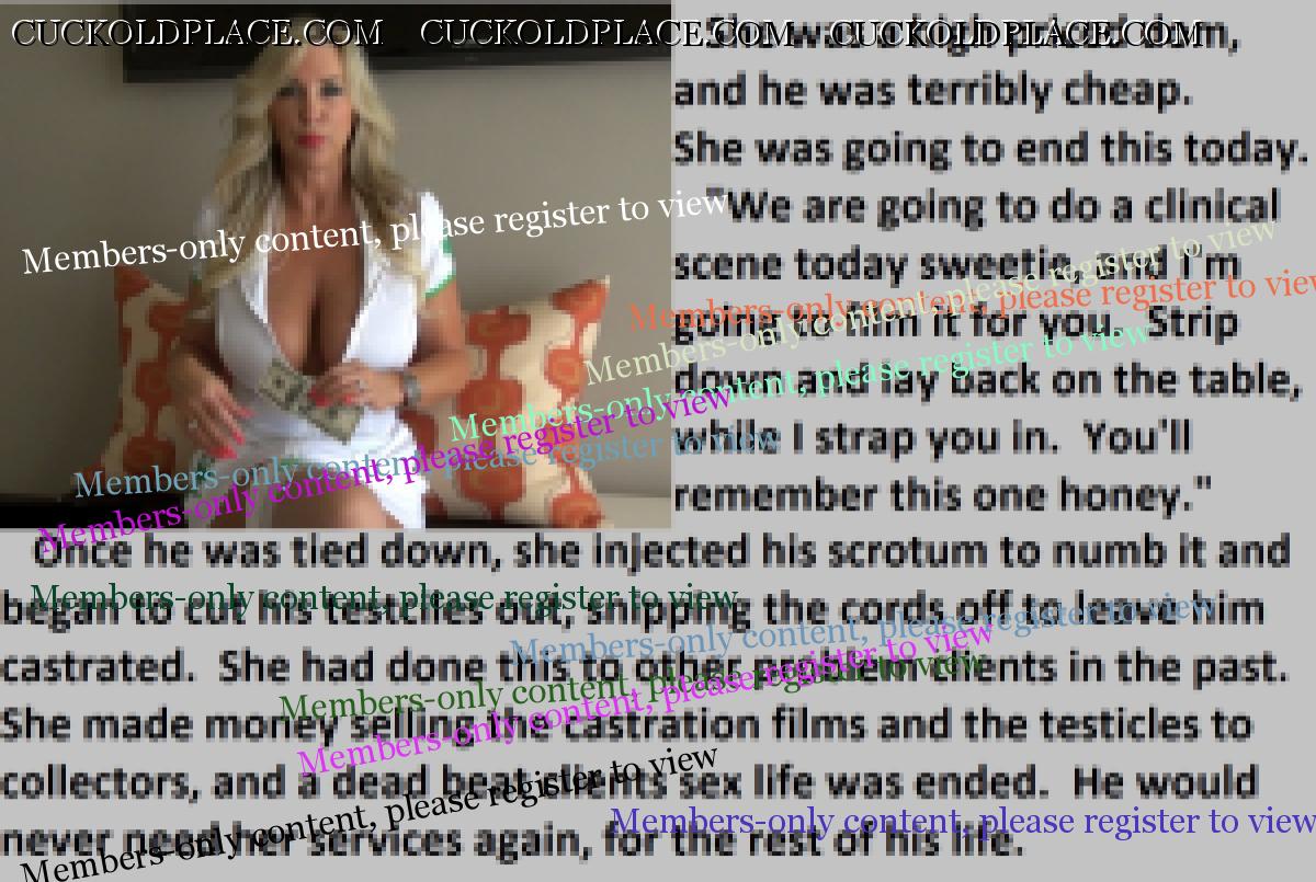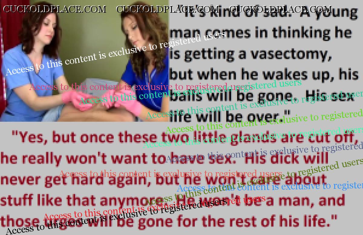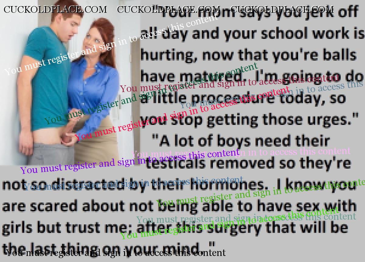 Great caps!!! I love the penectomy themed ones. The idea of testosterone coursing through my veins with no cock to satisfy my urges... Pure cruelty.