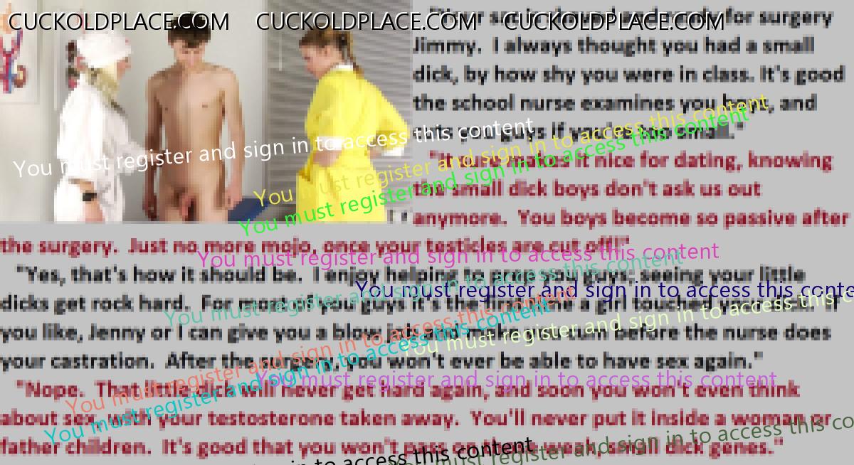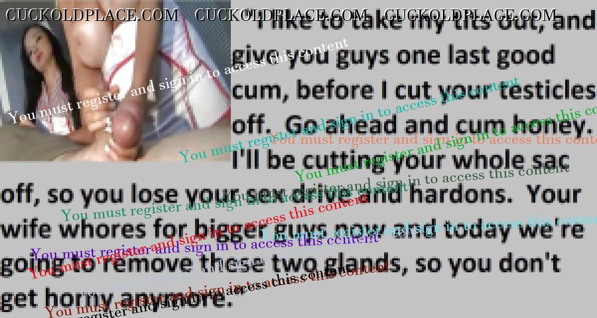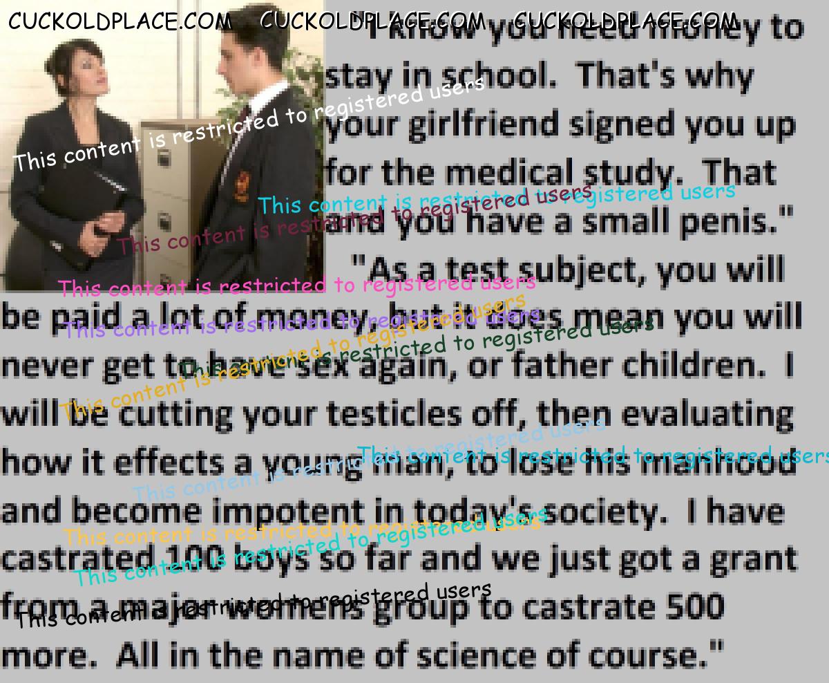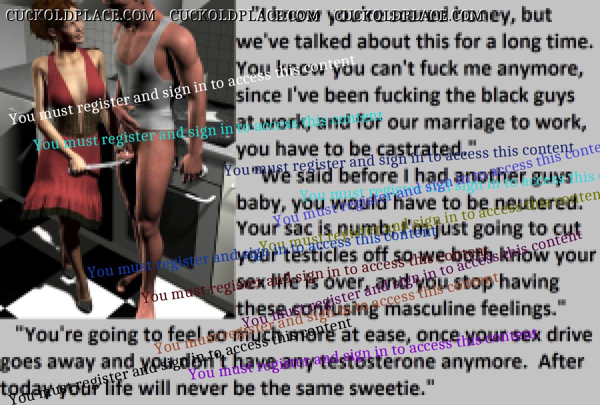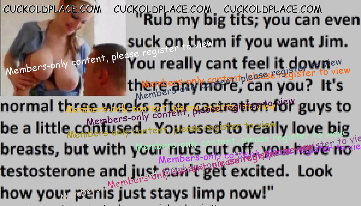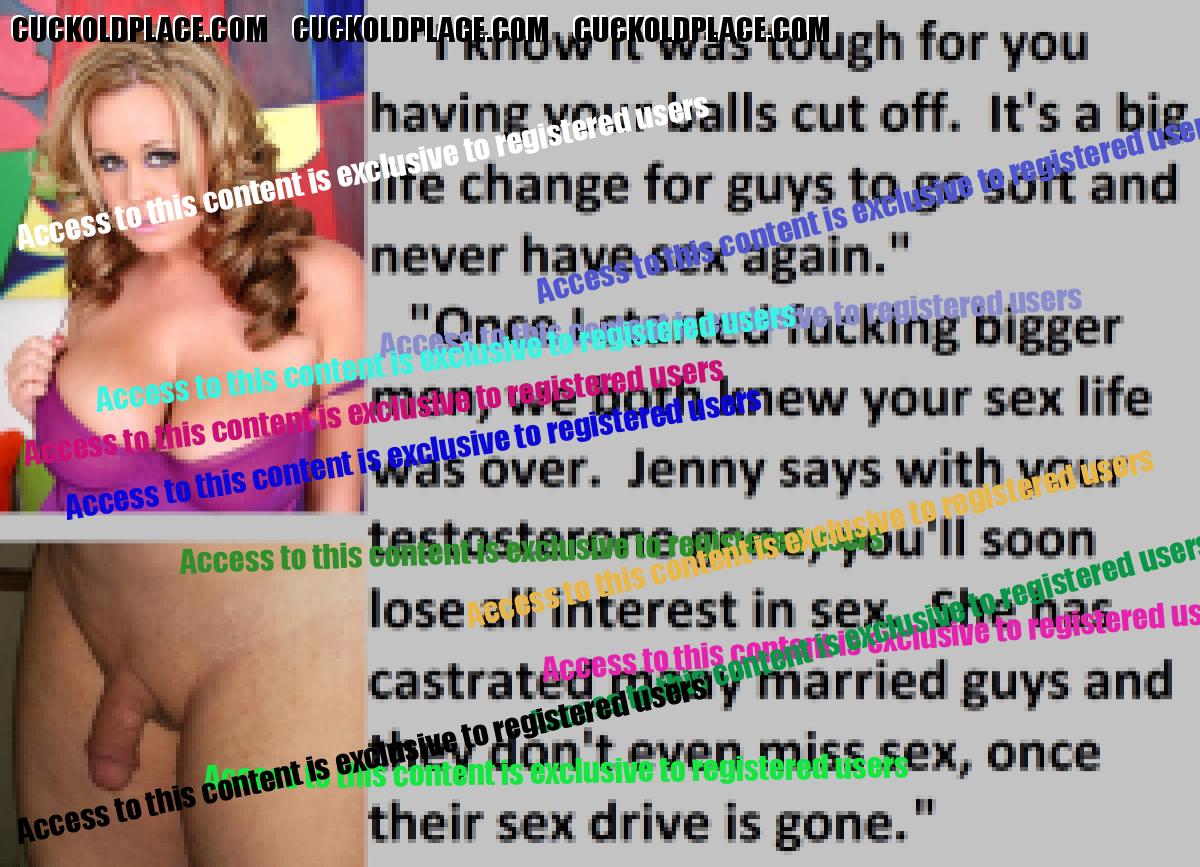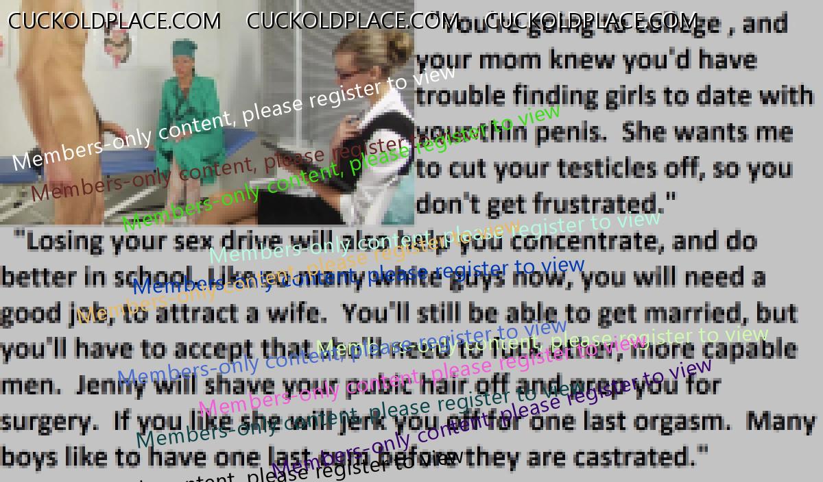 Great caps!!! I love the penectomy themed ones. The idea of testosterone coursing through my veins with no cock to satisfy my urges... Pure cruelty.