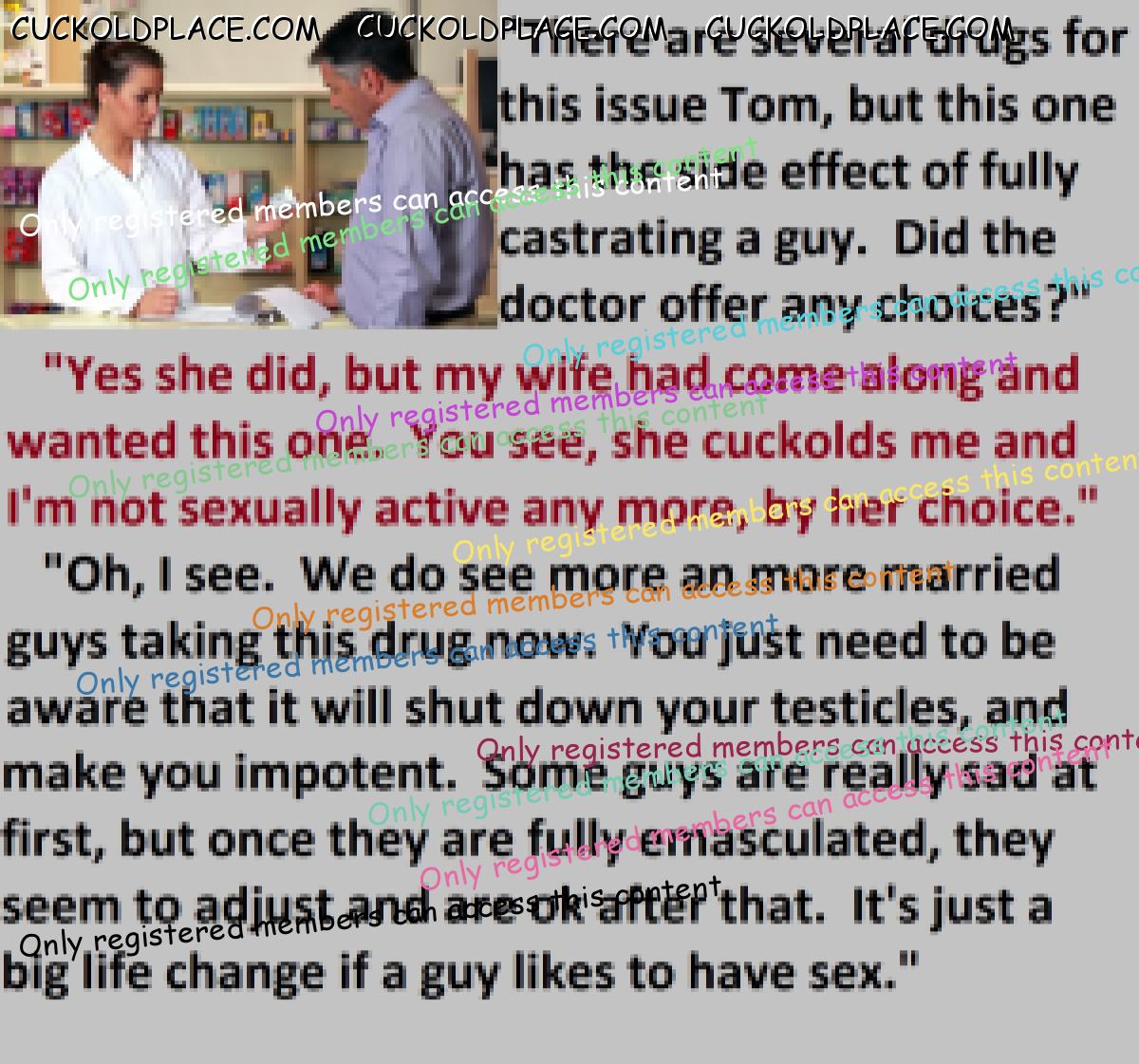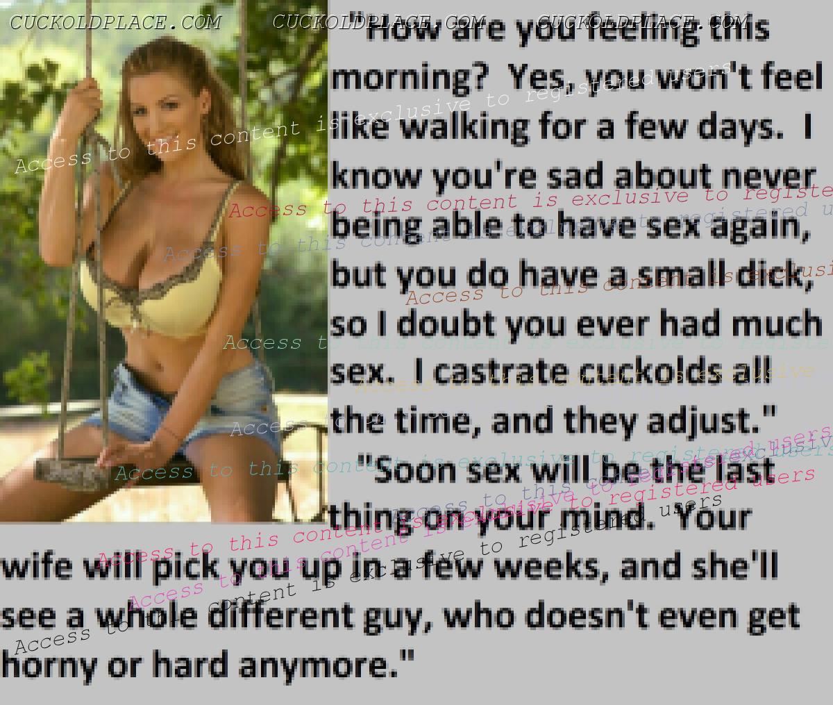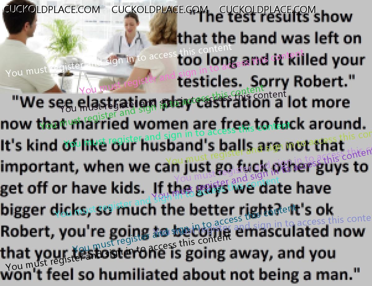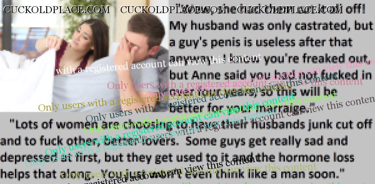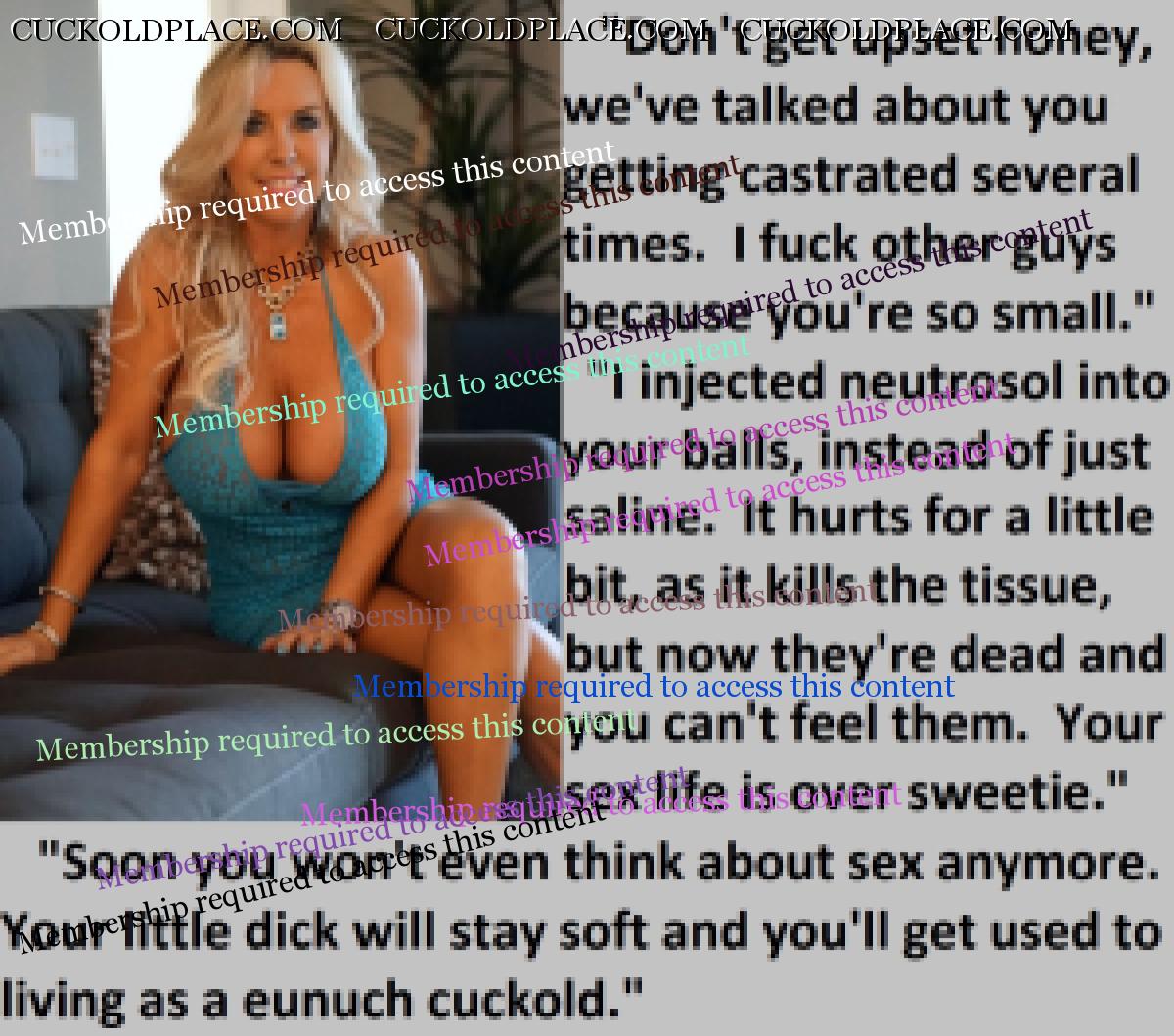 Great caps!!! I love the penectomy themed ones. The idea of testosterone coursing through my veins with no cock to satisfy my urges... Pure cruelty.