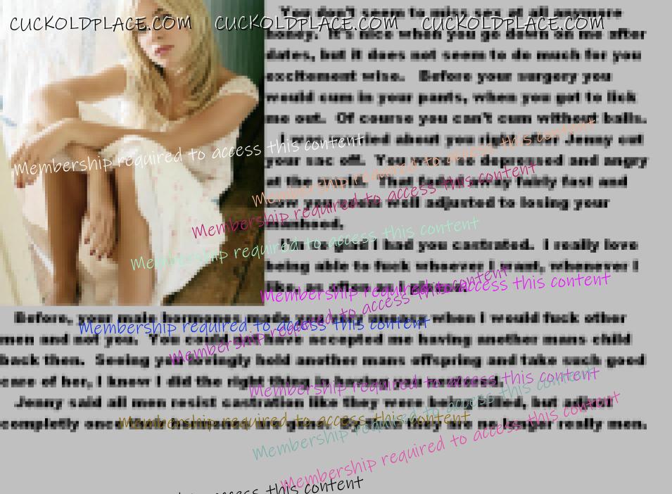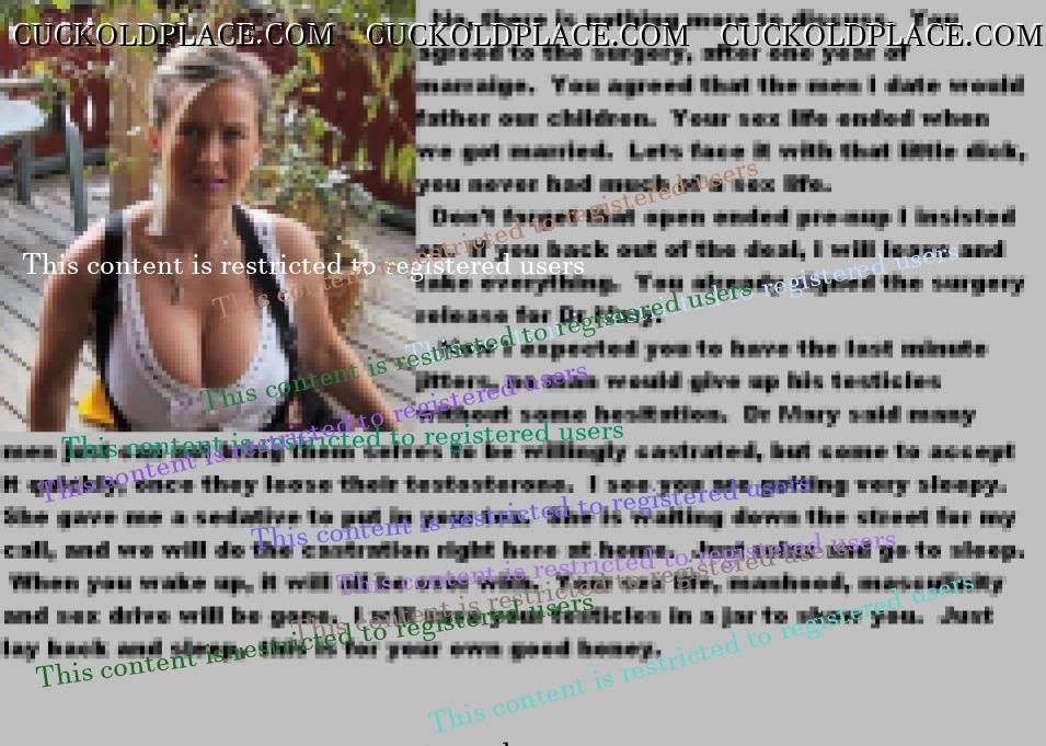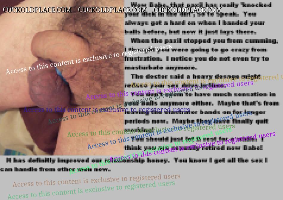 Yes, I've always been a good husband. Agreeing to her going outside our marraige for better sex. I always wanted her to be happy. Even to the point of giving up my sex life so she could have better. When she wanted to band and inject my nuts, I went along with it. When she took me to the counselor to find a way to control my masturbation, I started on the medication. It has definitely made it easier to be a good husband.
