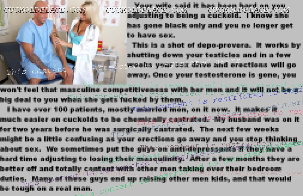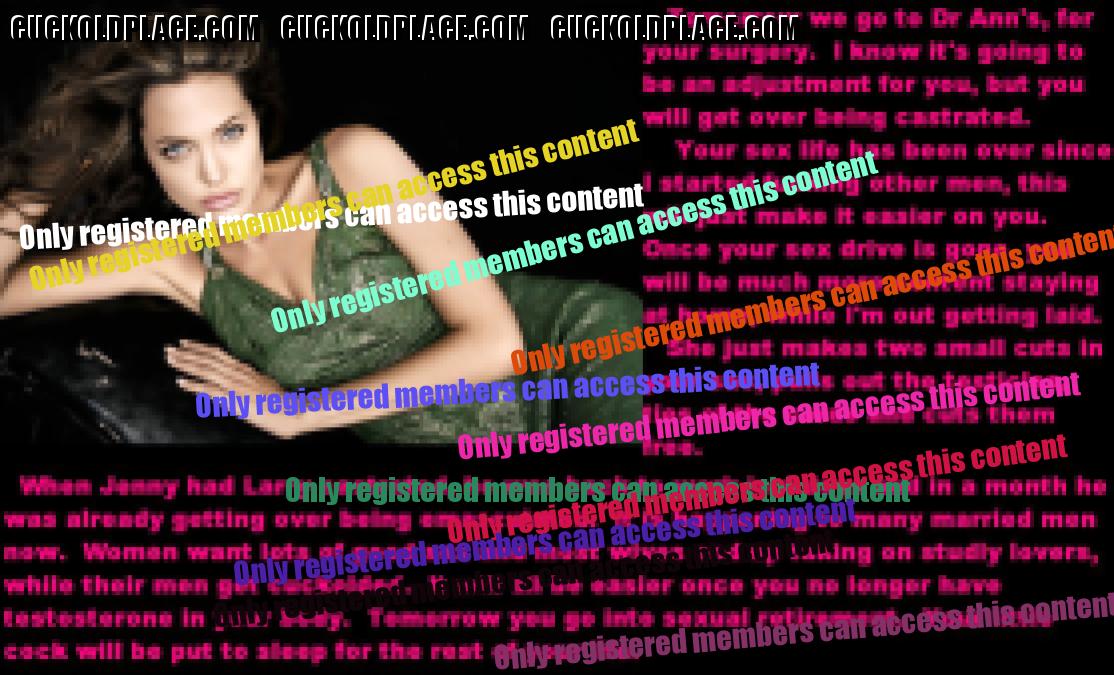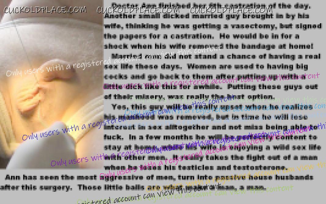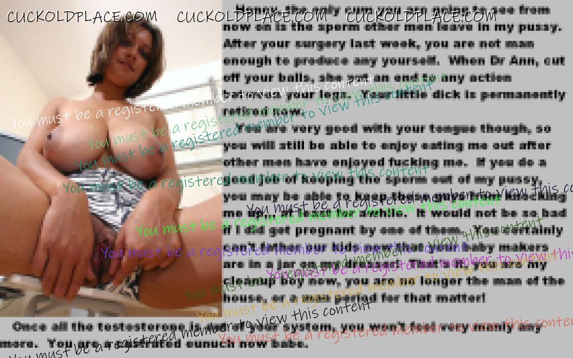"This one time, the bull fucked my ass, fucked my wifes ass and then made me eat the creampie. They then decided that I should be castrated. She tied my balls up while he pulled out a rusty pocket knife and made me cut off my own balls. She was pissed at me for reding on the carpet. The fact that I made her mad really pissed him off so he caned me without mercy. She also beat me with a belt. We were all pretty hungry after all of the action. They made me cook them a nice meal of steak and lobster. I was powerd to cook and eat my own balls. It was such a rush and I was so horny (even though my testicles were now being digested in my stomach) knowing my worthless cock would never work again. I died a week later from a serious infection. The bull made me dig my own grave and then before throwing me in, made me suck his massive cock to a sweet orgasm. He filled my shallow grave with dirt and then pissed on it.