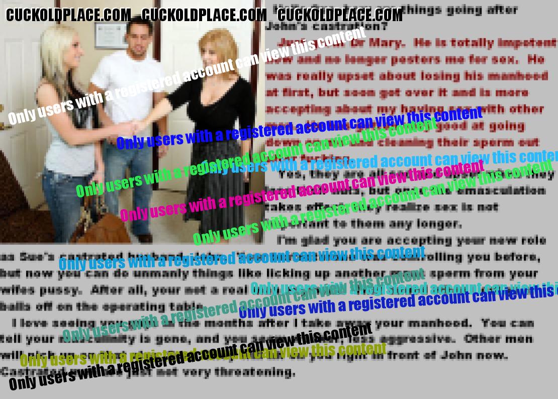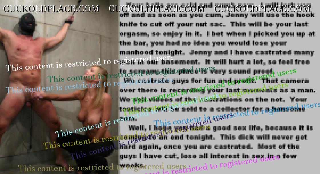 this is just about my favorite post on the site.I would love to see more penis cutting scenarios.Very Hot !! 59 yo man would like to enter a relationship with a lady for cuckold play