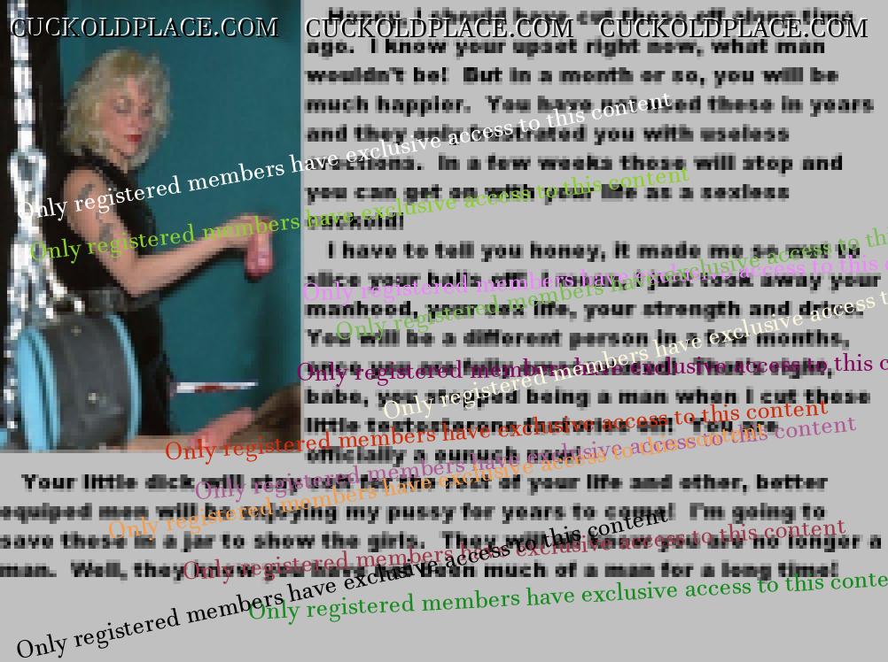 Would any of you guys on here actually want to have your balls removed? Honestly.......... If your wife or girlfriend offered, would you actually go through with it? Just wondering, it is a big theme on here I see.