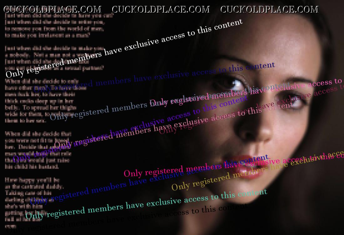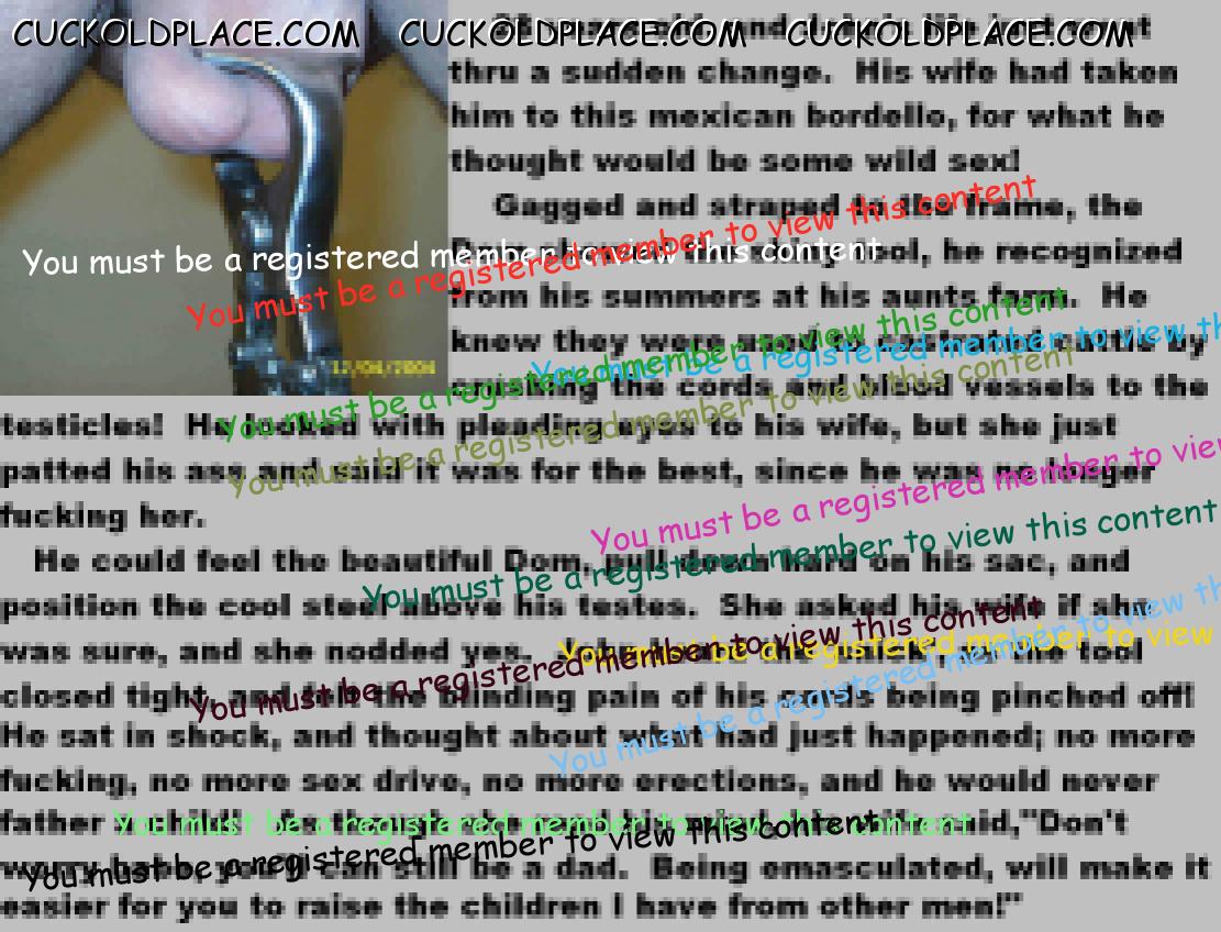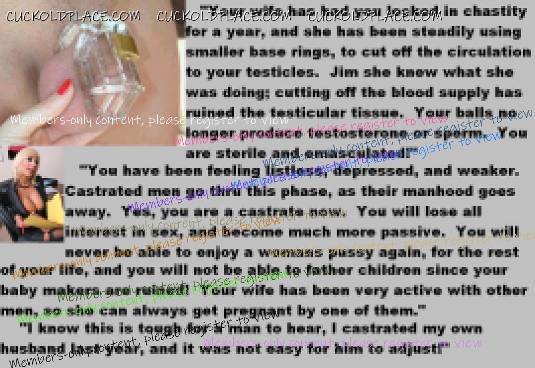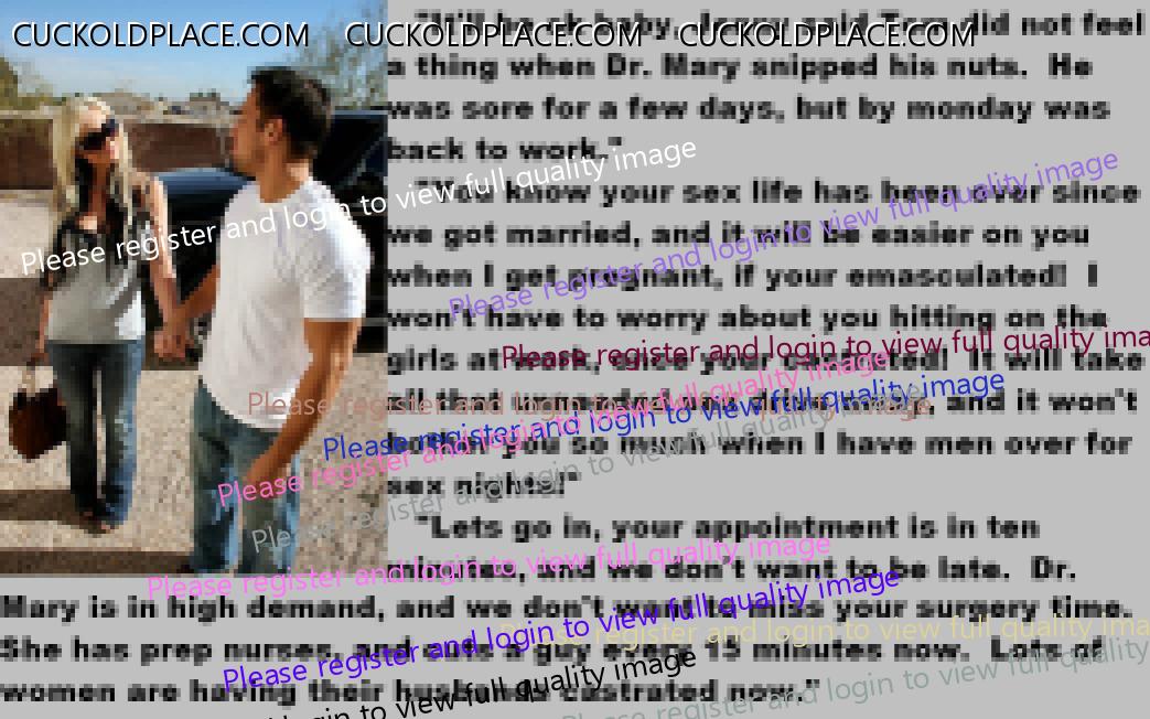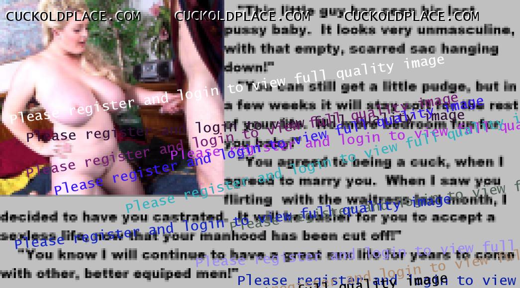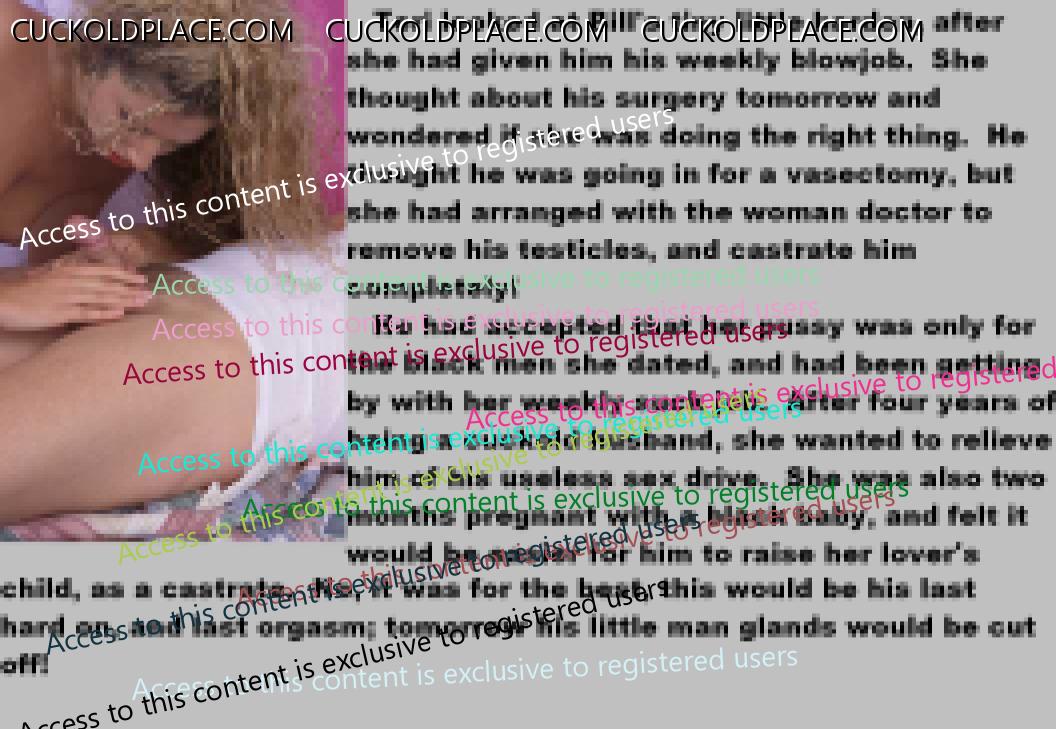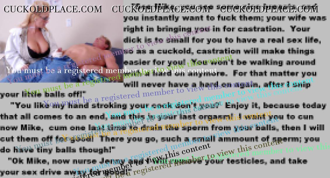 . I have to say CC that there are times when this threads themes, subjects and ideas just swirl around inside my head. It's so considerate of these girls to just retire you and take away all the pressure of sexual competition that we all know you were going to loose anyway..... If you think about it, it's really an act of mercy; to put you out of your pain, don't you think? .  There are few things in this world as sweet as the gelded husband.