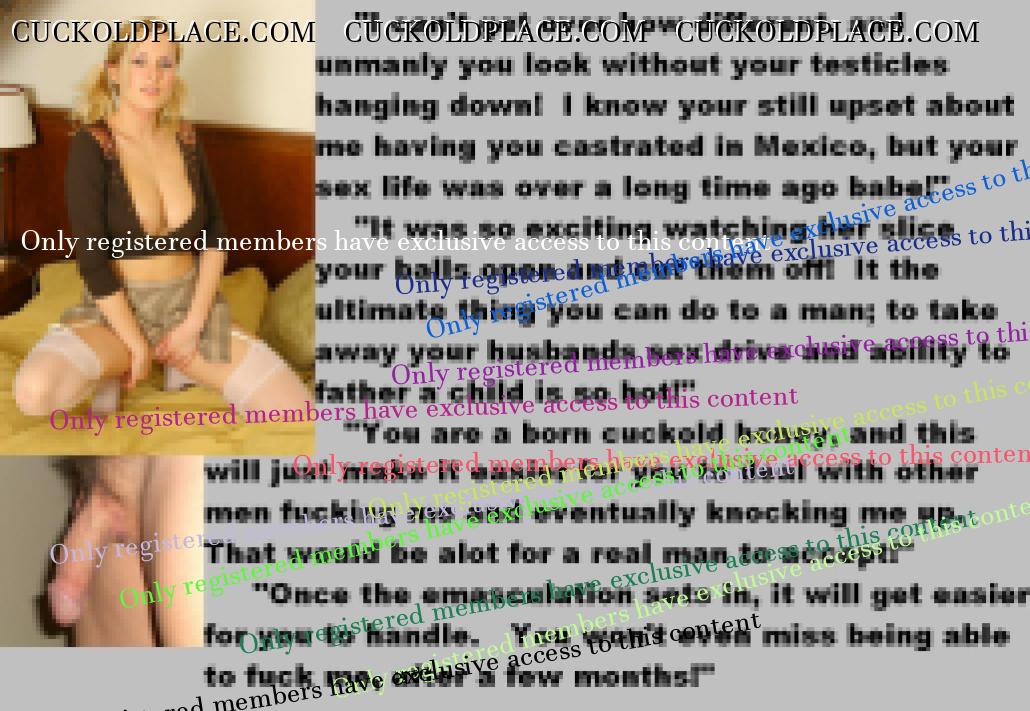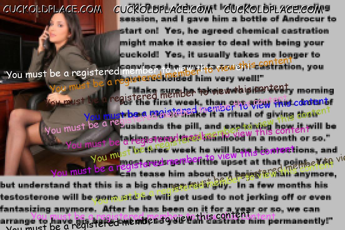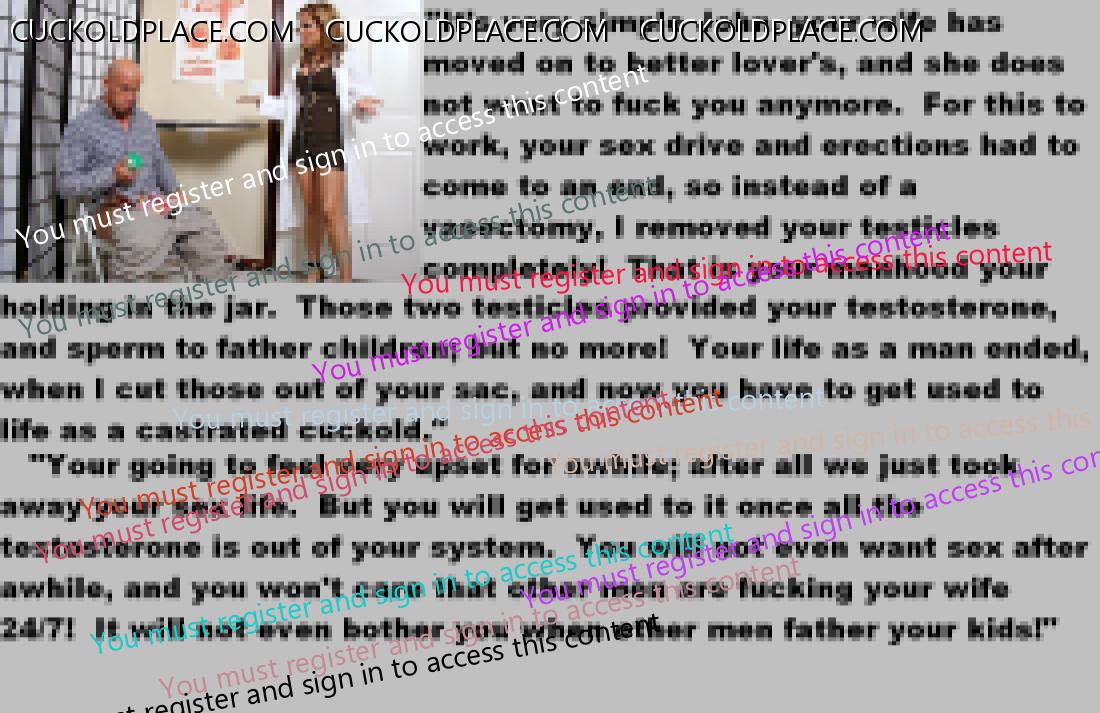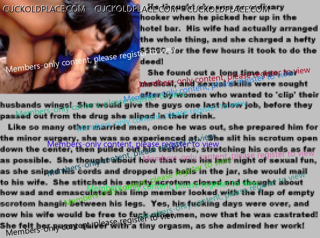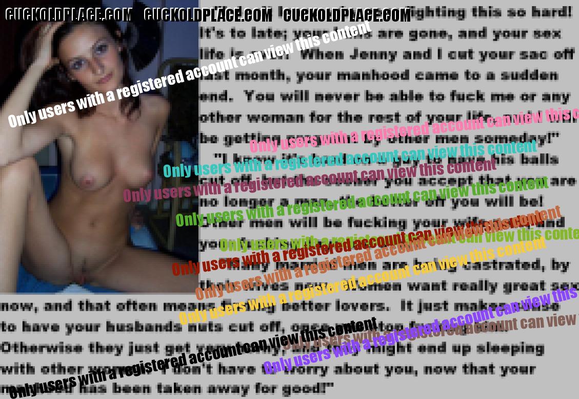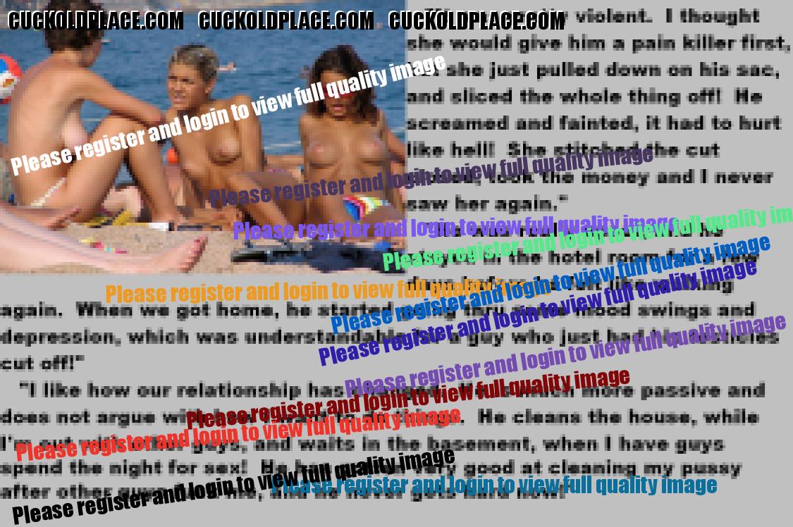 . I have to say CC that there are times when this threads themes, subjects and ideas just swirl around inside my head. It's so considerate of these girls to just retire you and take away all the pressure of sexual competition that we all know you were going to loose anyway..... If you think about it, it's really an act of mercy; to put you out of your pain, don't you think? .  There are few things in this world as sweet as the gelded husband.